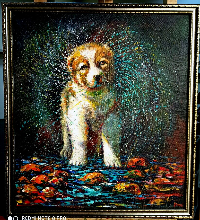 Абрстракция Алабай с брызгами необычными цветами неожиданной красотой тем кто ценит творчество, кто понимает, тем кто любит красоту души, великолепия 70*80 размер акрил масло скидка есть поспешите 10000 мнт