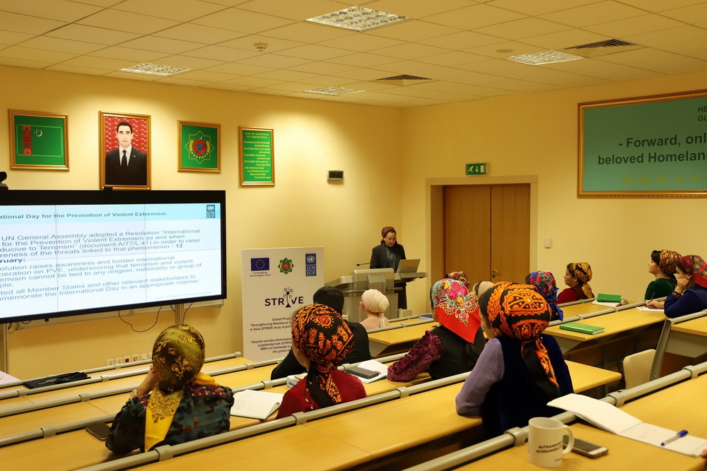 С 9 по 10 февраля в Международном университете гуманитарных наук и развития Туркменистана был проведен семинар на тему “Укрепление устойчивости молодежи путем оказания психологической поддержки на уровне сообщества”. Семинар приурочен к Международному дню предупреждения насильственного экстремизма (ПНЭ), отмечаемого 12 февраля.