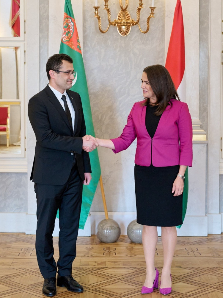 В рамках церемонии вручения грамот Посол передал Президенту Венгрии Каталин Новак тёплые слова приветствия и наилучшие пожелания от имени Президента Туркменистана Сердара Бердымухамедова, а также от имени Национального Лидера туркменского народа, Председателя Халк Маслахаты Туркменистана Гурбангулы Бердымухамедова.