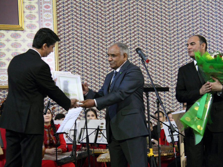 В честь юбиляра был дан концерт с участием оркестра народных инструментов консерватории под управлением заслуженного артиста Туркменистана Умара Игамова.