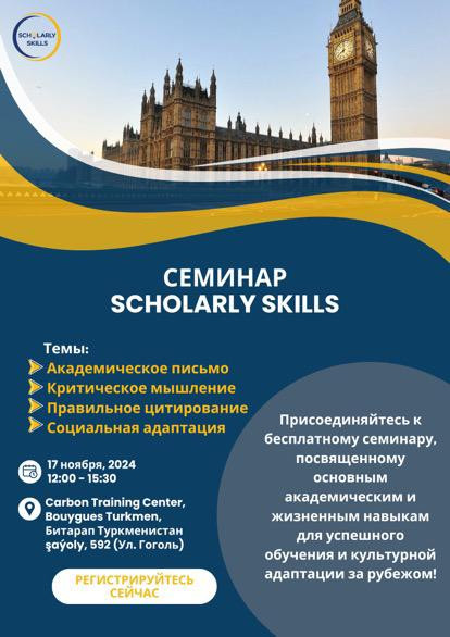 17 ноября в Ашхабаде, в учебном центре «Буиг» состоится семинар Scholarly skills.