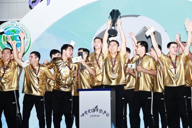 «Успешное выступление и яркие победы футбольной команды «Аркадаг» на встречах чемпионата Туркменистана 2023-2024 годов, и в матчах за Кубок и Суперкубок Туркменистана, ясно показало, что у этой футбольной команды большое будущее», – подчеркнул Президент.