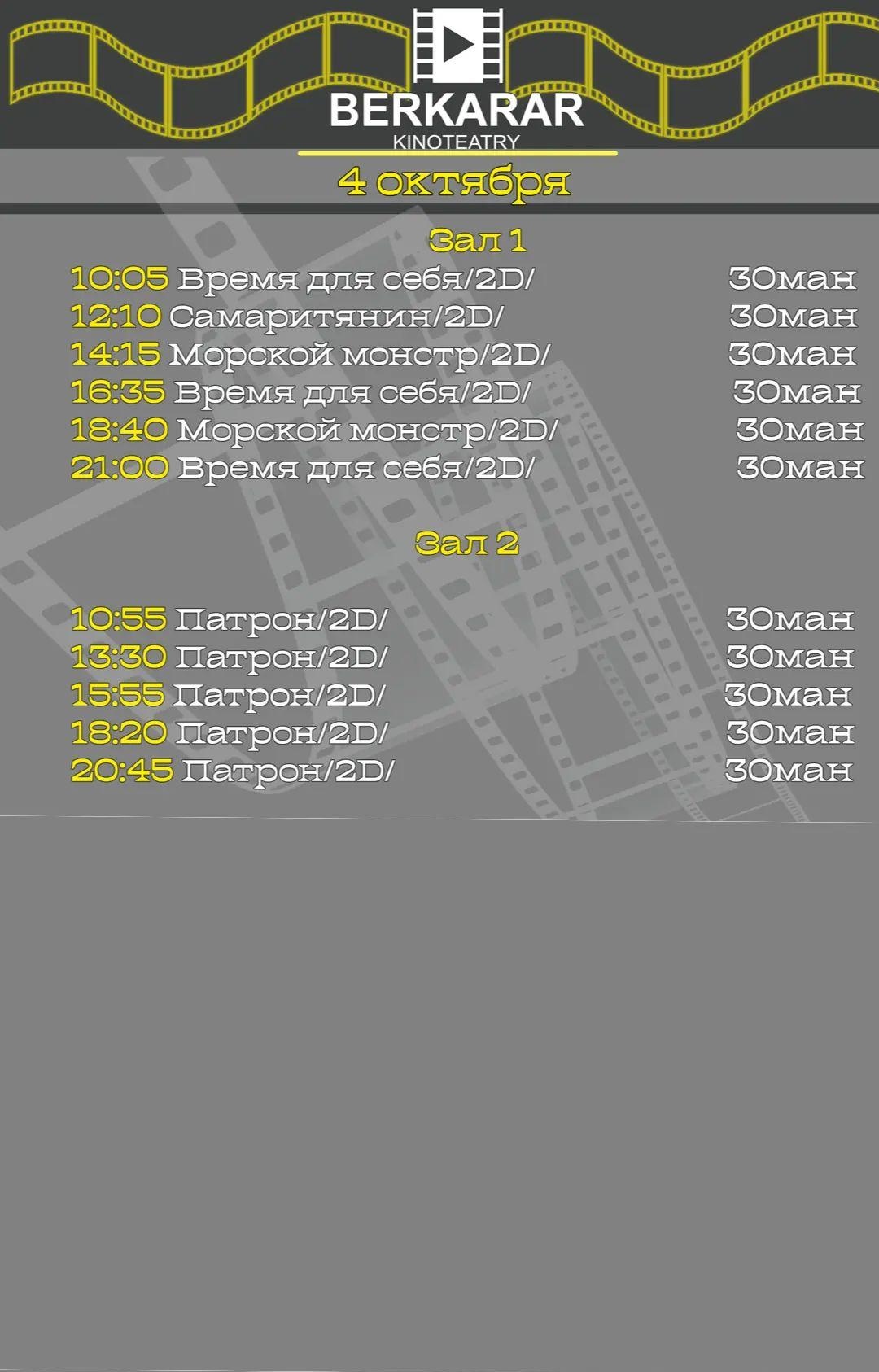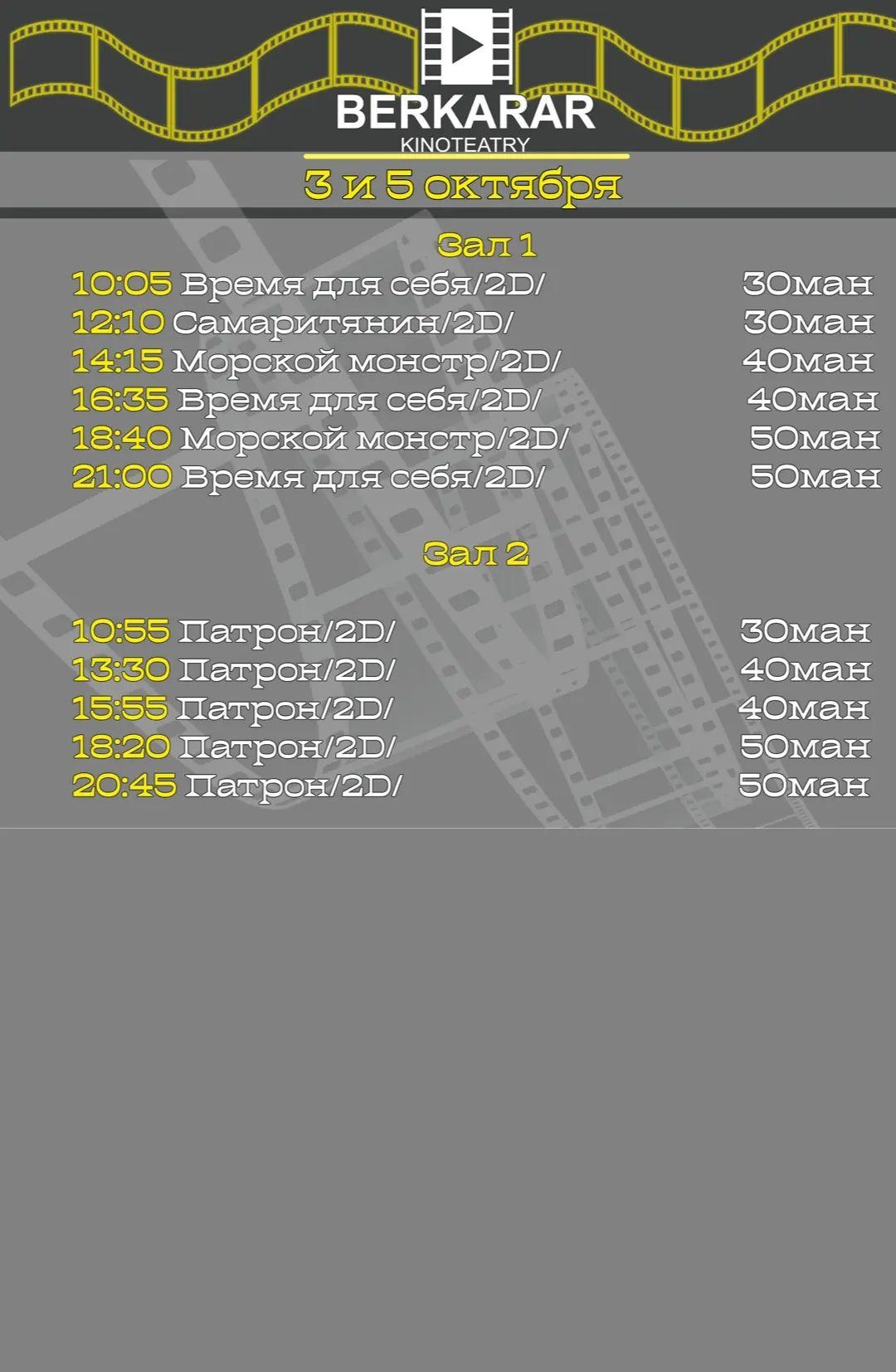 Афиша кинотеатра «Беркарар» (03.10 - 05.10.2022)