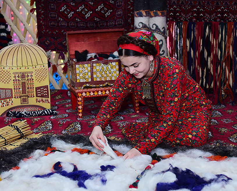 The Central Council of the Women's Union of Turkmenistan and the National Trade Union Center traditionally hold a competition among craftswomen for making felt mats Gülüň Owadan! (“Your patterns are beautiful!”).