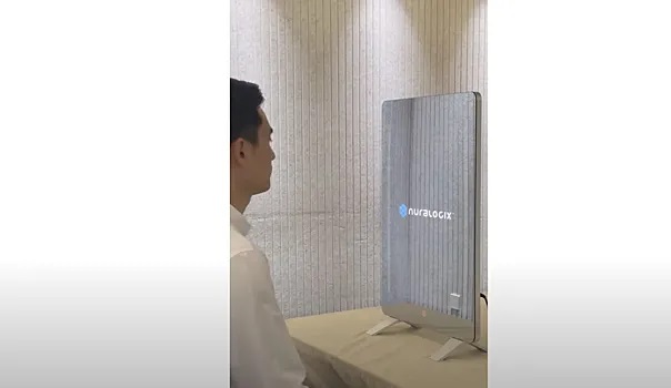 The device is a tabletop mirror with a 21,5-inch screen, cameras and other sensors. It scans a person's face, analyzing blood flow in the vessels under the skin. This is done using patented transdermal optical imaging technology.