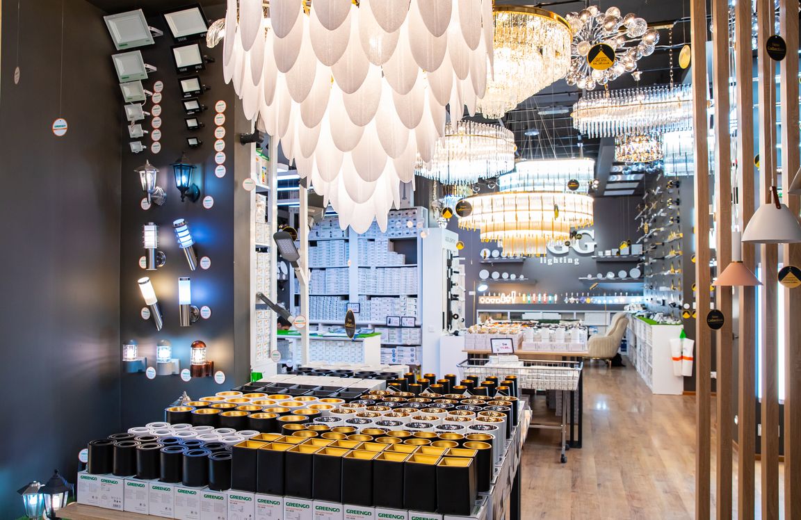 In addition to new spots, the GREENGO store offers a wide range of lighting products, including a variety of chandeliers and energy-saving lamps.