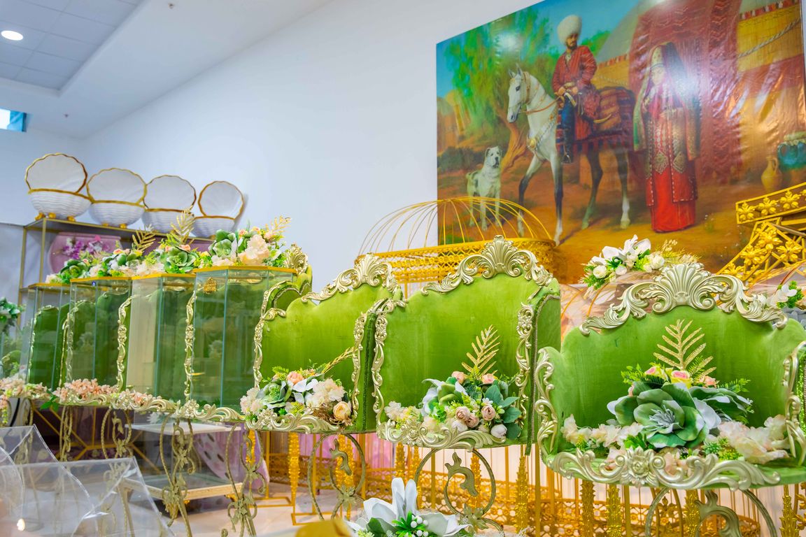 Bike Bukjakar shop offers comprehensive design of wedding celebrations taking into account national traditions of Turkmenistan. Bike Bukjakar provides services for event decoration, bride's dowry design and holding of “halat gechdi” ceremony.