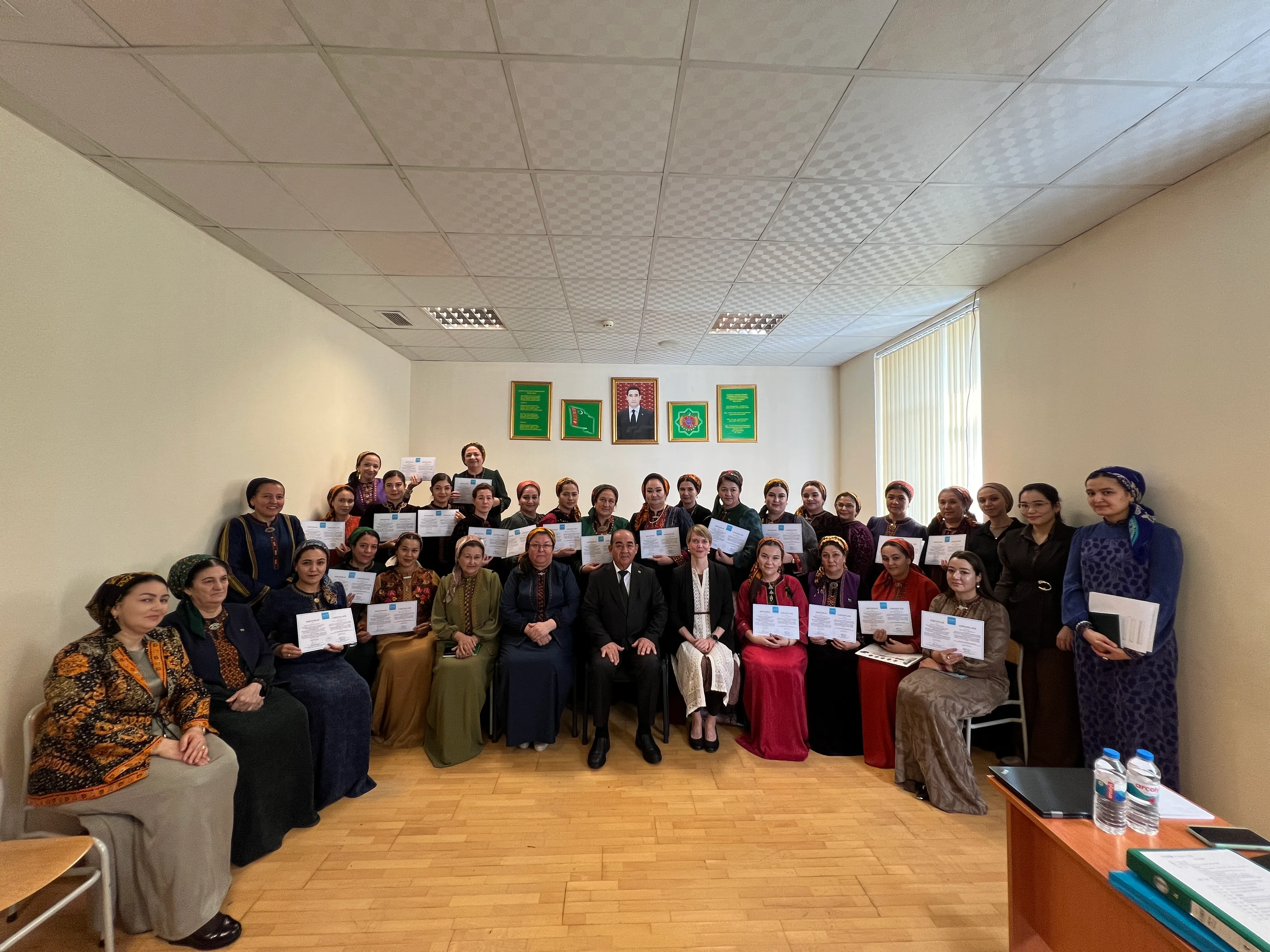 Last week, the Ministry of Education of Turkmenistan and the National Institute of Education, in partnership with UNICEF, marked the completion of the pilot parenting support programme with a certificate ceremony held at the National Institute of Education. The ten-week pilot programme was implemented in 24 preschools across the country, where 24 kindergarten teachers conducted weekly sessions with around 250 parents. Each session introduced parents to practical approaches to supporting early childhood development — from understanding developmental milestones and encouraging positive communication to using play as a learning tool, establishing healthy routines, and preparing children for school.