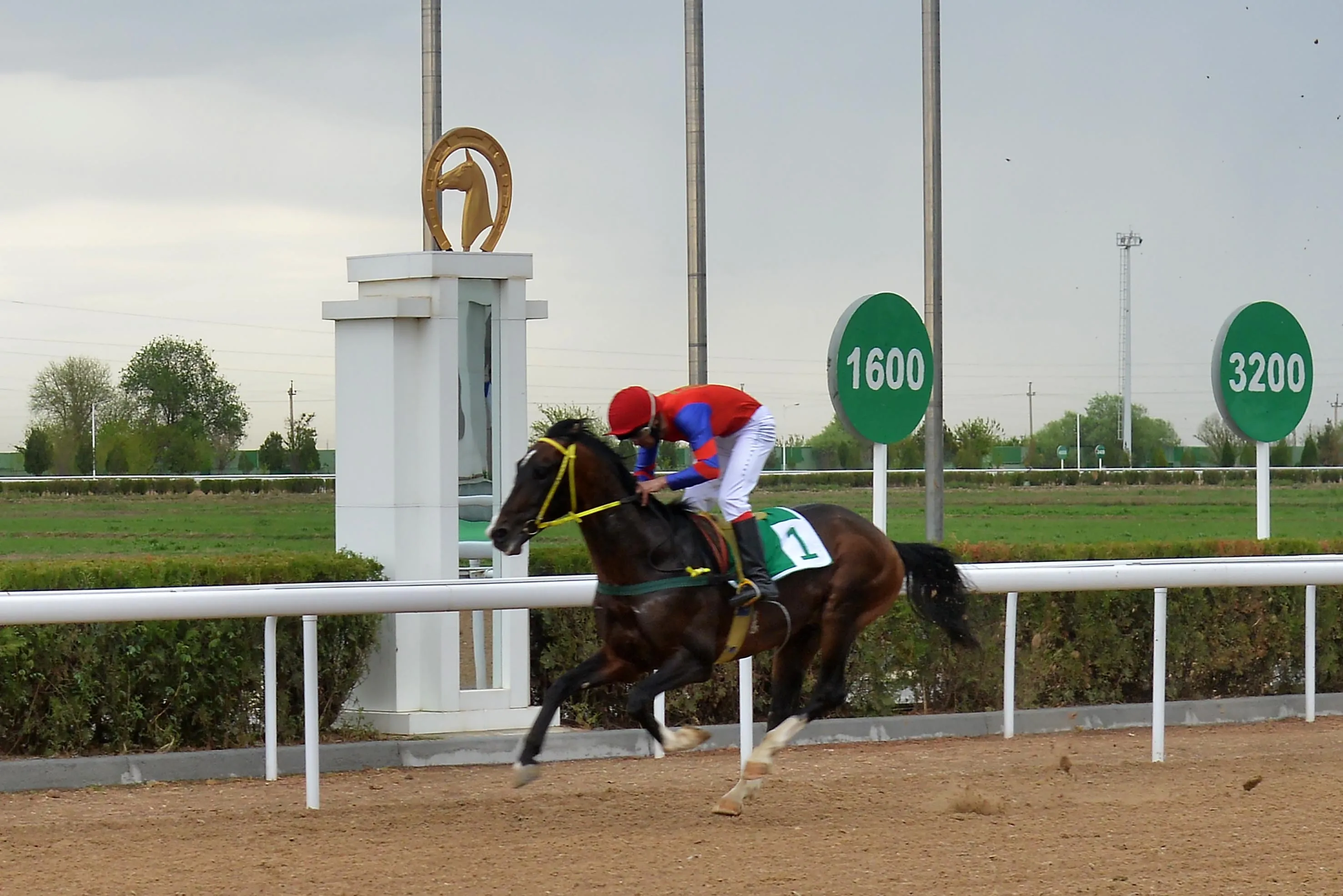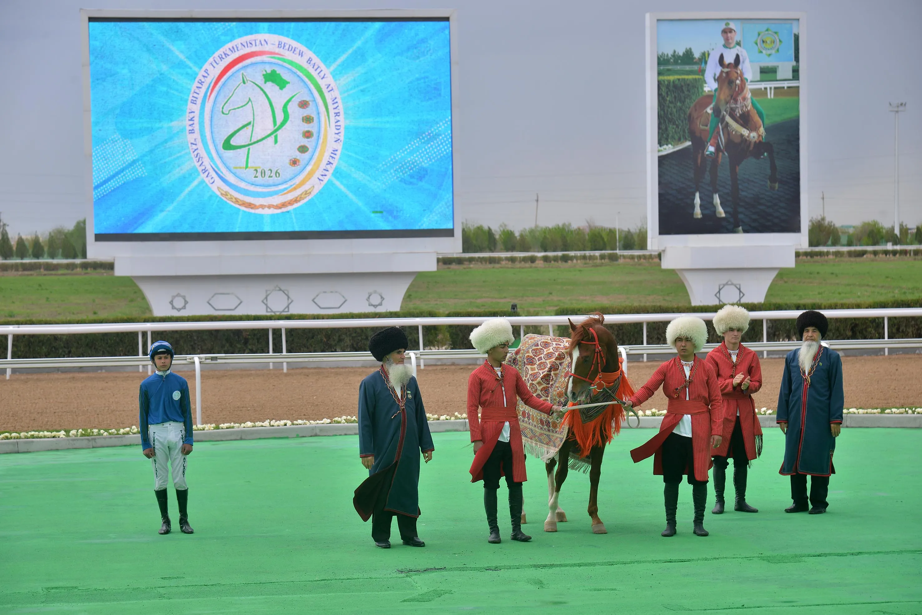 Далее внимание зрителей переключилось на беговые дорожки, где в первом заезде на дистанции 1200 метров среди лошадей в возрасте четырёх лет и старше первенствовал гнедой конь Галмаз под управлением жокея Мухиддина Кулыева, показавший результат 25,7 секунды.