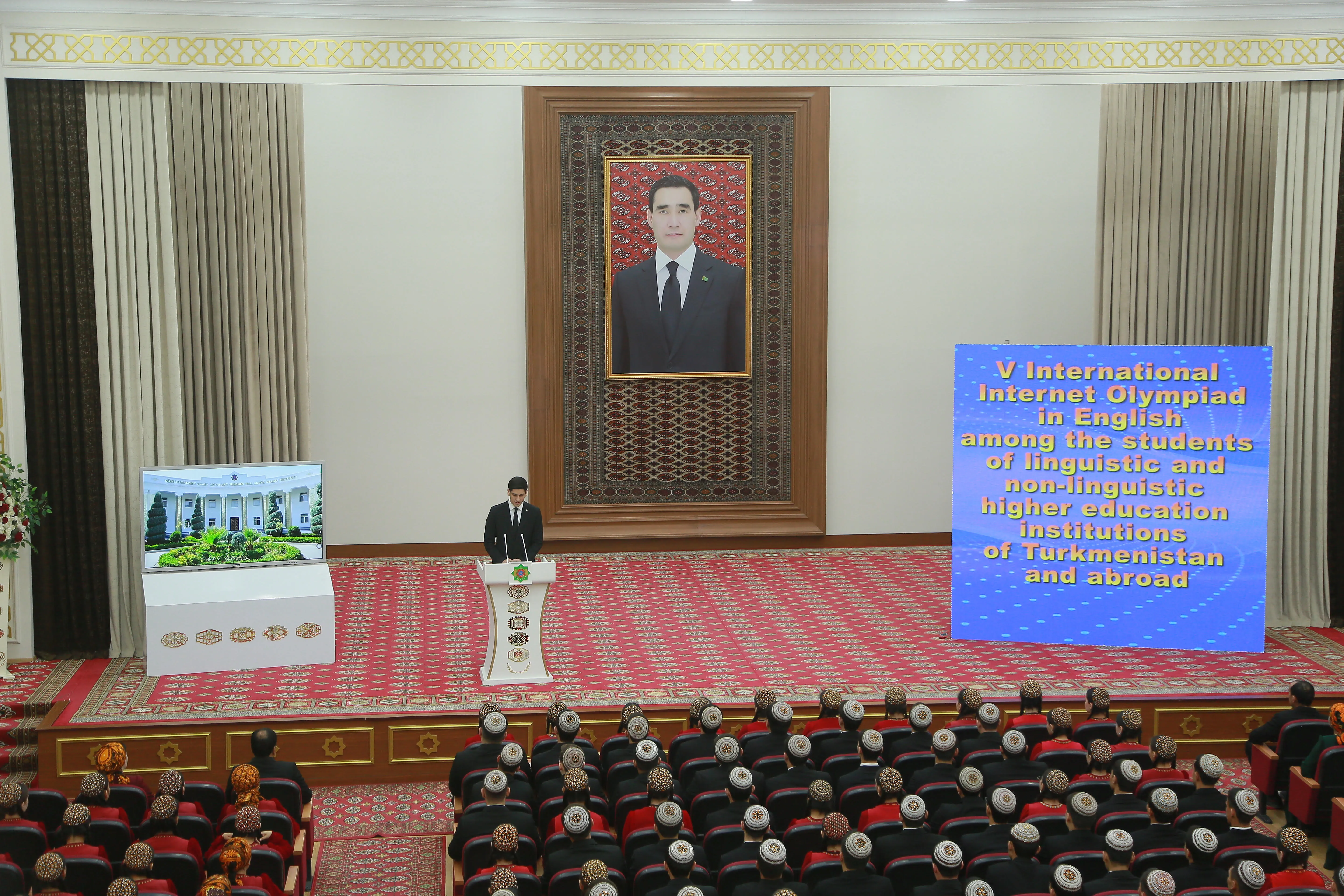 Сегодня в Туркменском национальном институте мировых языков имени Довлетмаммета Азади состоялась торжественная церемония открытия V Международной интернет-олимпиады по английскому языку среди студентов.