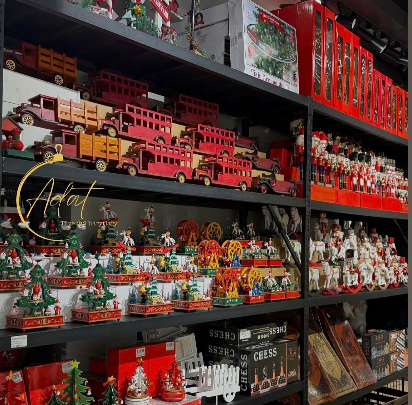 В Adat посетителей ждут десятки видов новогодней продукции: искусственные ёлки любых размеров, гирлянды, праздничные игрушки, декоративные наборы, коллекционные фигурки, а также Деды Морозы, Снегурочки и тематические украшения. Магазин подчёркивает, что вся продукция представлена по максимально доступным ценам, чтобы подготовка к празднику стала простой и экономичной для каждой семьи.