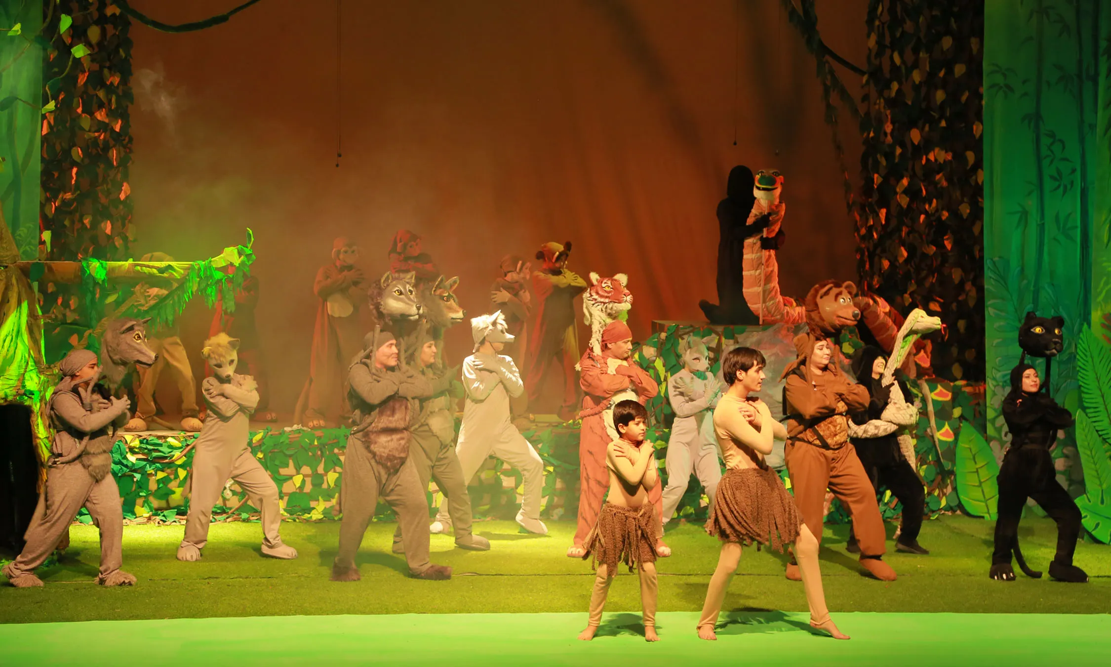 Молодому режиссёру-постановщику Кериму Атаеву удалось воссоздать на сцене атмосферу джунглей с богатой экзотической природой и бурлящей баталиями жизнью зверей.