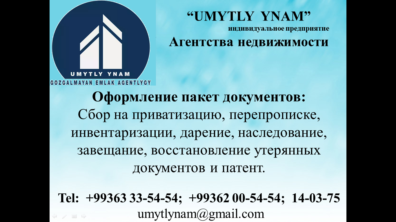 “Умытлы Ынам” И. П агенство недвижижемости собираеть пакет документов: