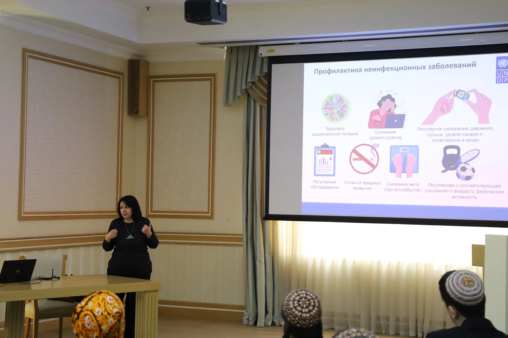 В здании ООН в Ашхабаде прошла встреча экспертов ПРООН со студентами для обсуждения профилактики неинфекционных заболеваний (НИЗ) и инноваций в сфере цифрового здравоохранения.