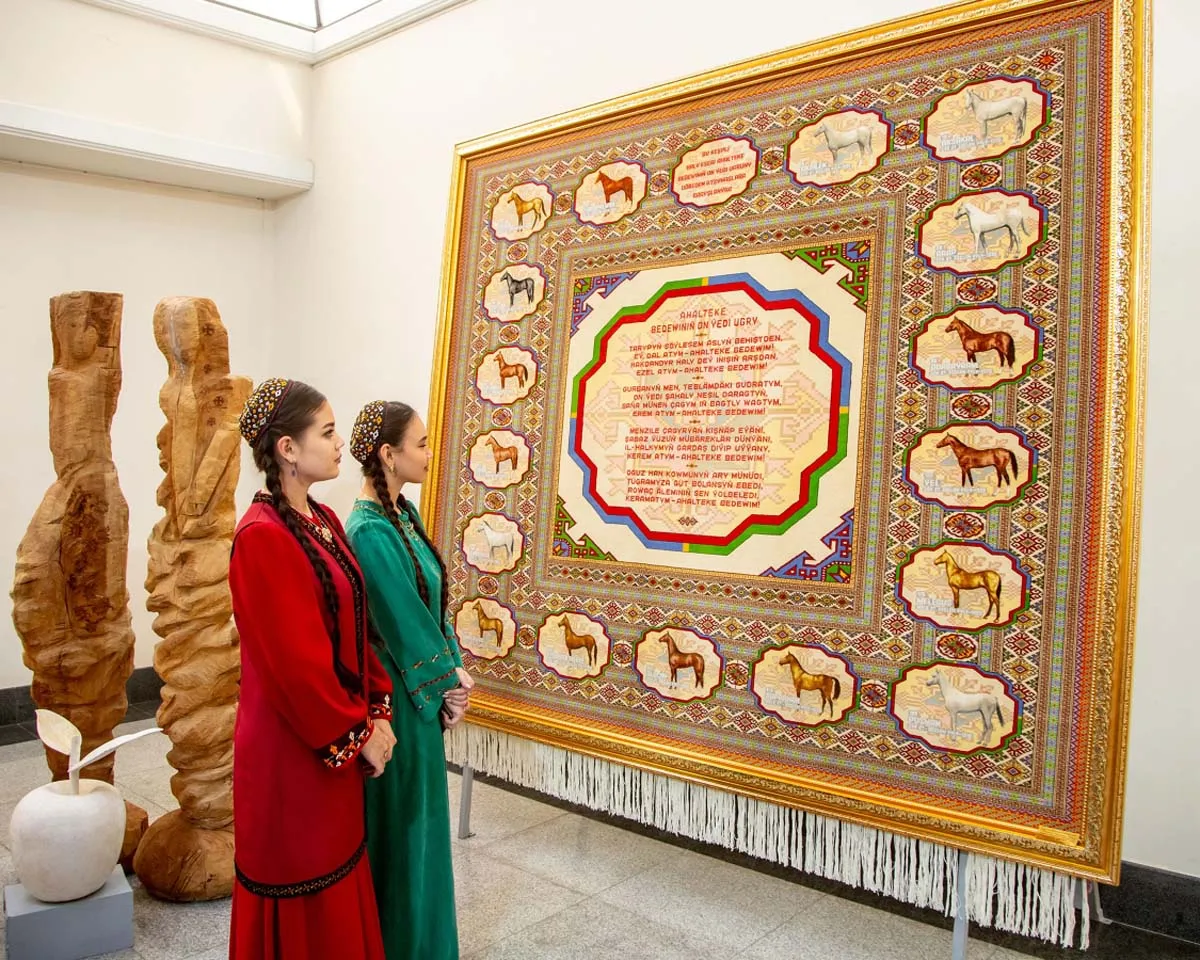 Главный экспонат, представленный скульптором Бабасары Аннамурадовым - табун ахалтекинских скакунов, выполненных в позолоте. В этой скульптурной композиции автором заключен прообраз девиза года «Независимый нейтральный Туркменистан – родина целеустремленных крылатых скакунов». Золотые кони символизируют Золотой век туркмен.