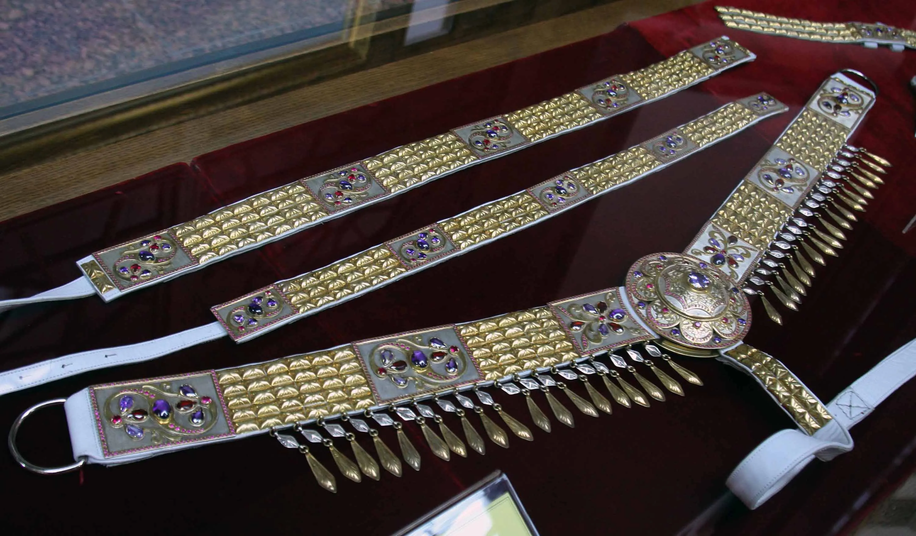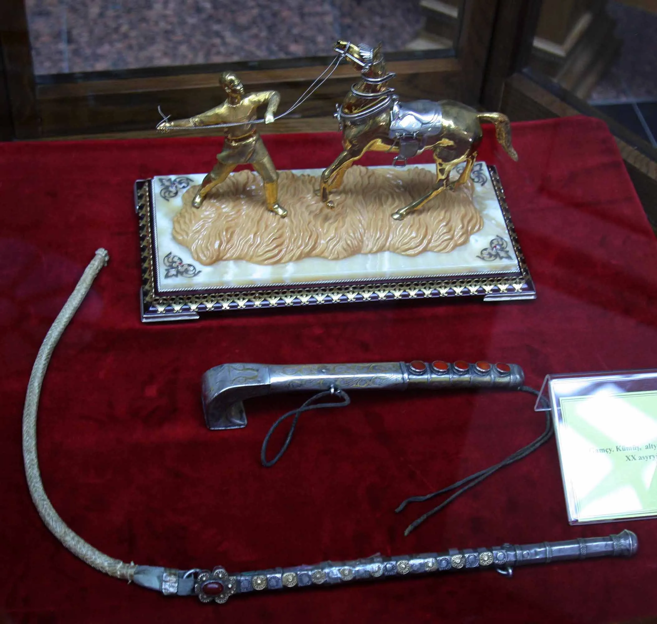 Здесь также можно увидеть несколько ювелирных изделий, которые прославляют туркменских ахалтекинских лошадей и символизируют прогресс эпохи.