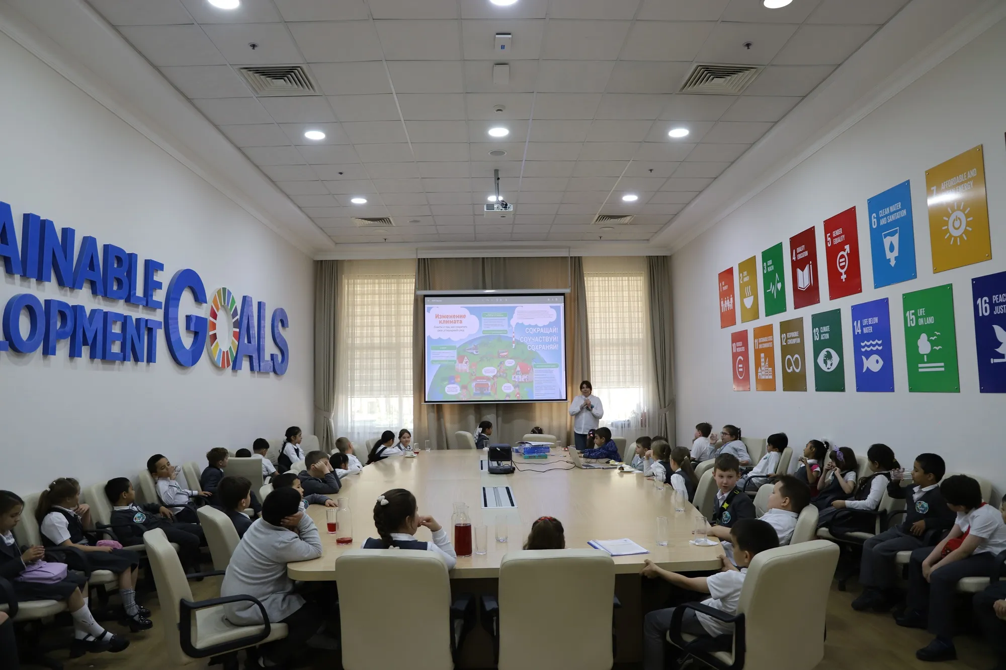 Программа развития ООН (ПРООН) в Туркменистане провела интерактивную образовательную сессию для учащихся 2-го класса Совместной туркмено-российской средней общеобразовательной школы имени А.С. Пушкина.