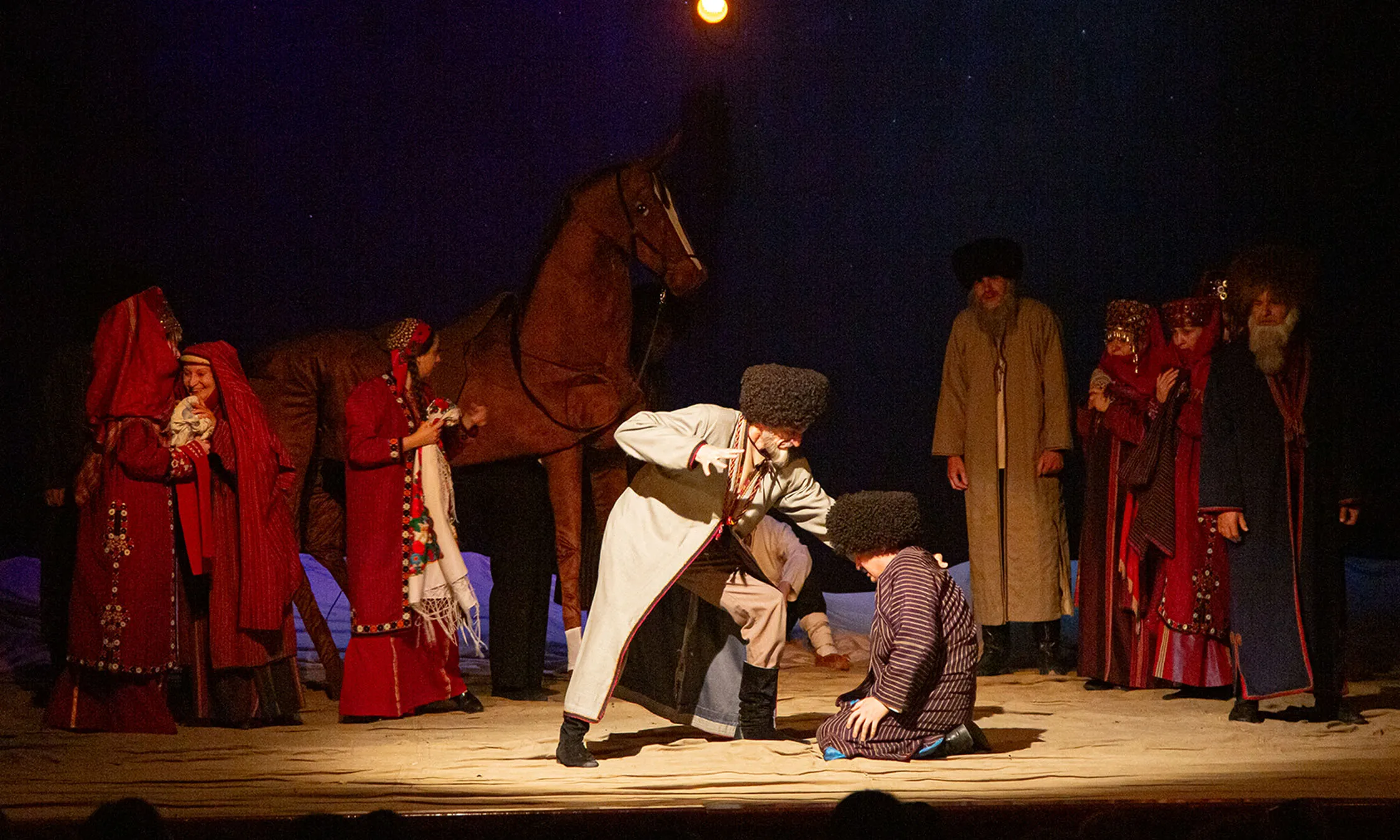 К Национальному празднику туркменского скакуна творческий коллектив Государственного русского драматического театра имени А.С. Пушкина представил спектакль «Обгоняя ветер» по пьесе Владислава Давыдова.