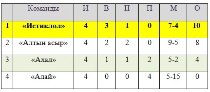 Таким образом, «Алтын асыр» взял реванш у «Ахала» за недавнее поражение с минимальным счётом 1:0 в чемпионате страны. После этой игры у чемпиона Туркменистана стало 8 очков – на 2 меньше, чем у таджикского «Истиклола», победившего сегодня в Оше кыргызский «Алай» – 3:2. «Ахал» с 4 очками остался на третьей позиции. Замыкает турнирную таблицу «Алай», у которого очков пока нет.