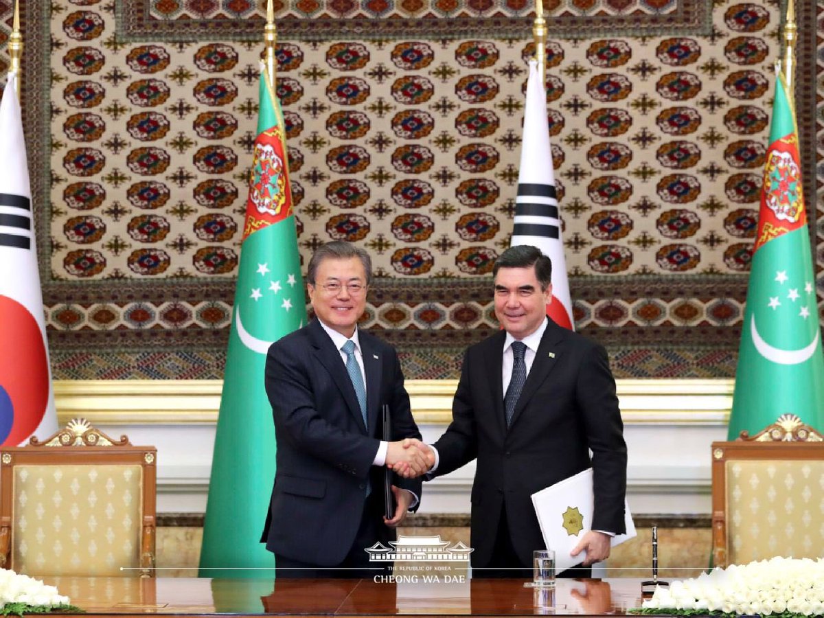 Завершились туркмено-корейские переговоры Президента Гурбангулы Бердымухамедова и Президента Мун Чжэ Ина с участием членов официальных делегаций двух стран. По итогам встречи состоялась церемония подписания двусторонних документов, сообщает Государственное информагентство Туркменистана.