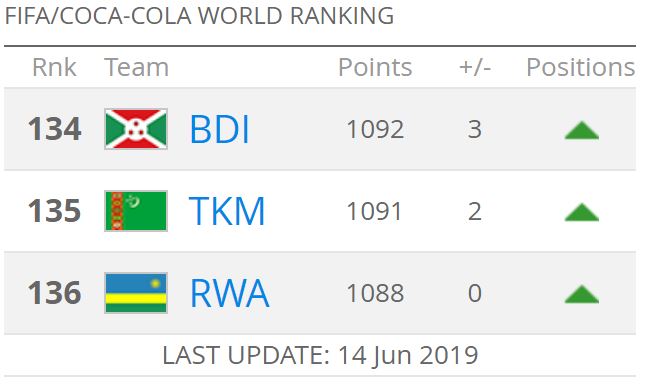 Коллектив хорватского специалиста Анте Мише после товарищеского матча со сборной Уганды (0:0) прибавил одну строчку и поднялся на 135-е место в табели. Тройка сильнейших не изменилась: первое место занимает сборная Бельгии, за ней располагаются сборные Франции и Бразилии.