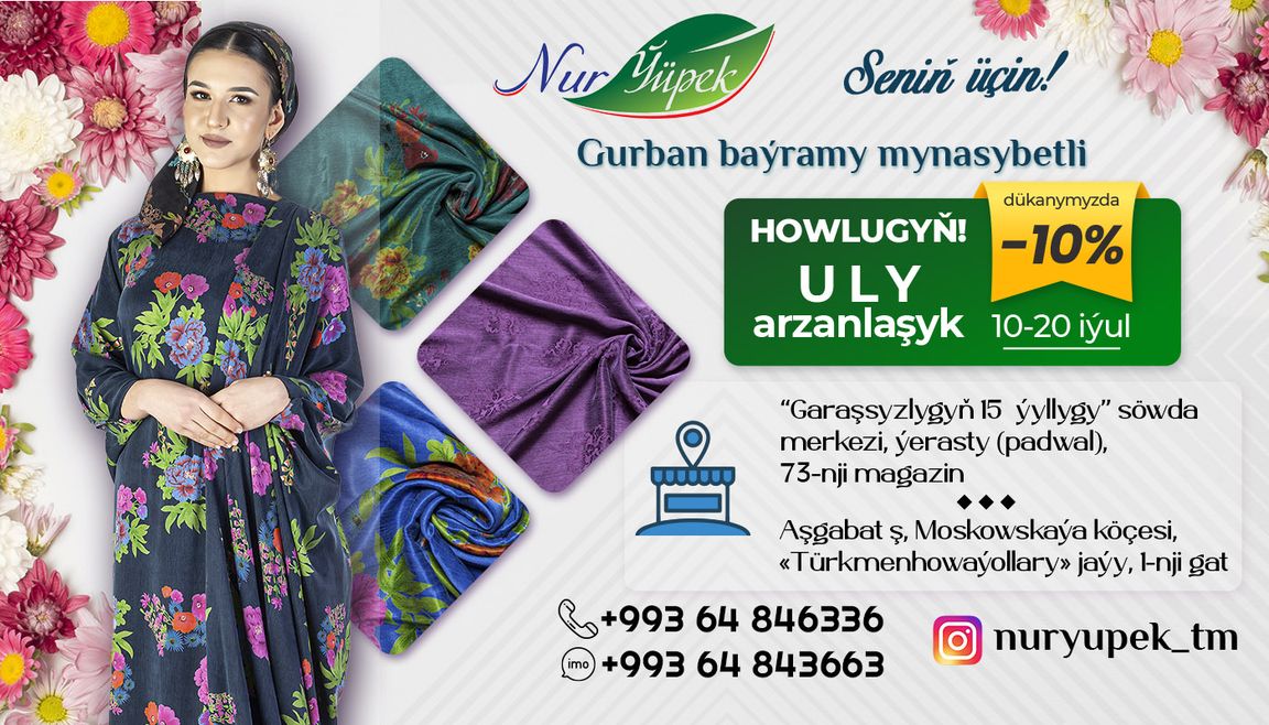 Сеть магазинов «Nur Ýüpek» сообщает о скидках на ткани в честь праздника Курбан байрамы