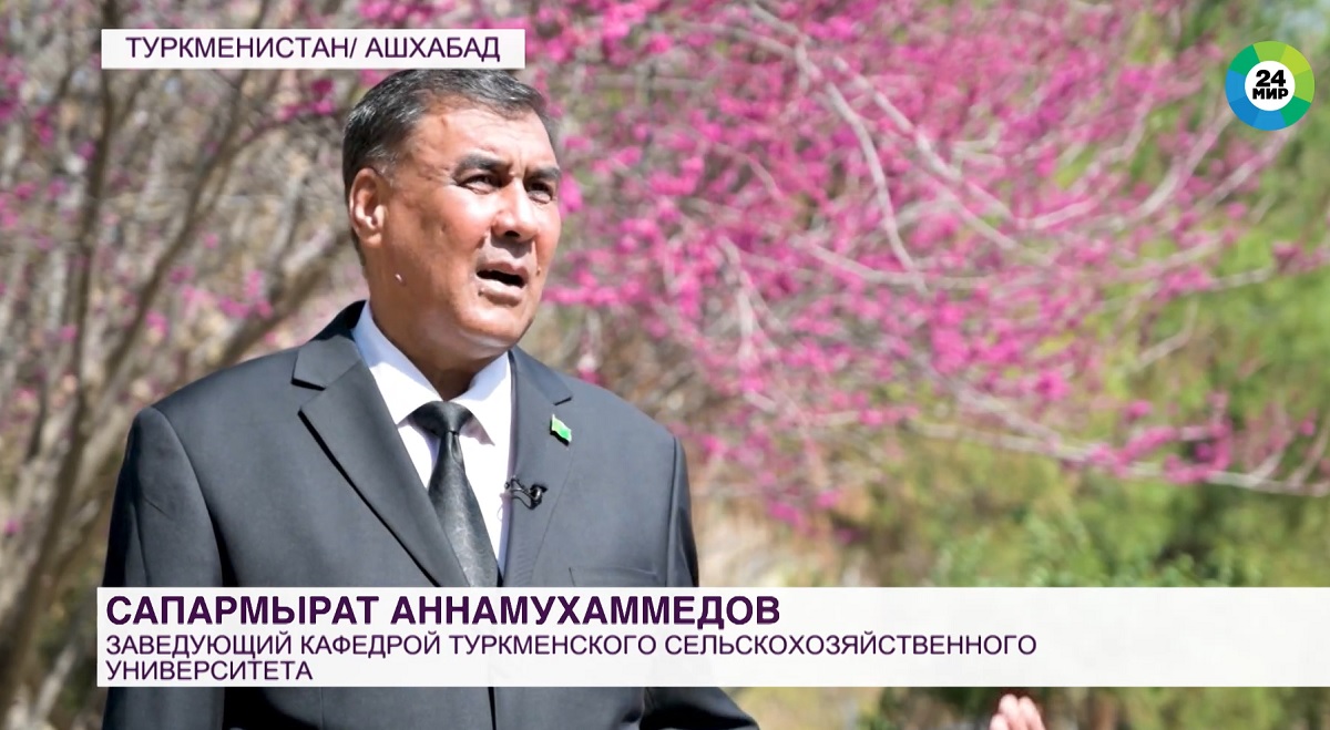 «Каждый вид дерева имеет свой период цветения, – рассказывает телеканалу «МИР 24» заведующий кафедрой Туркменского сельскохозяйственного университета Сапармырат Аннамухаммедов. – Позади нас растет Церцис Гриффита, которую также называют «туркменской сакурой». Ее фиолетово-розовые венчики без аромата источают обильный нектар, привлекая пчел и птиц. Период цветения Церциса начинается в конце марта и длится до мая».