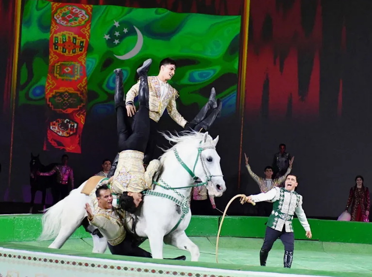 Группа национальных конных игр Galkynyş («Галкыныш»), основанная в Туркменистане в 2007 году, является самой известной цирковой группой верховых артистов не только в стране, но и в мире. Артисты группы регулярно работают над новыми номерами программы в стремлении удивить публику и достичь очередных рекордов. Например, сейчас группа сосредоточена на трюке по прохождению под двумя лошадьми на полном скаку.