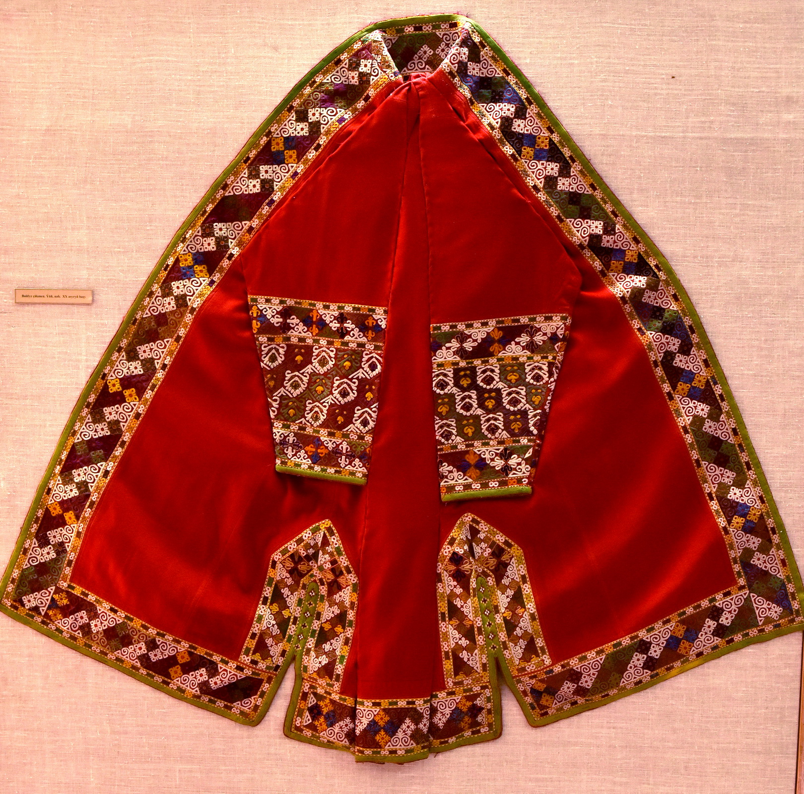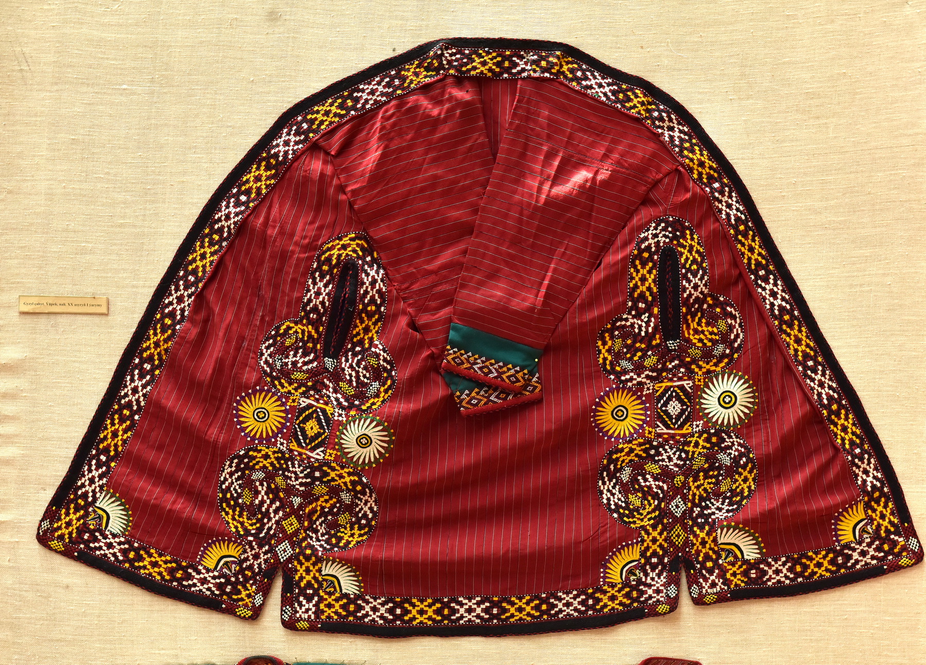 Экспозиция представляет посетителям уникальную коллекцию старинных туркменских халатов конца XIX – начала XX веков, которые ранее хранились в музейных запасниках. Выставка демонстрирует разнообразие национальной одежды, характерной для различных регионов Туркменистана.