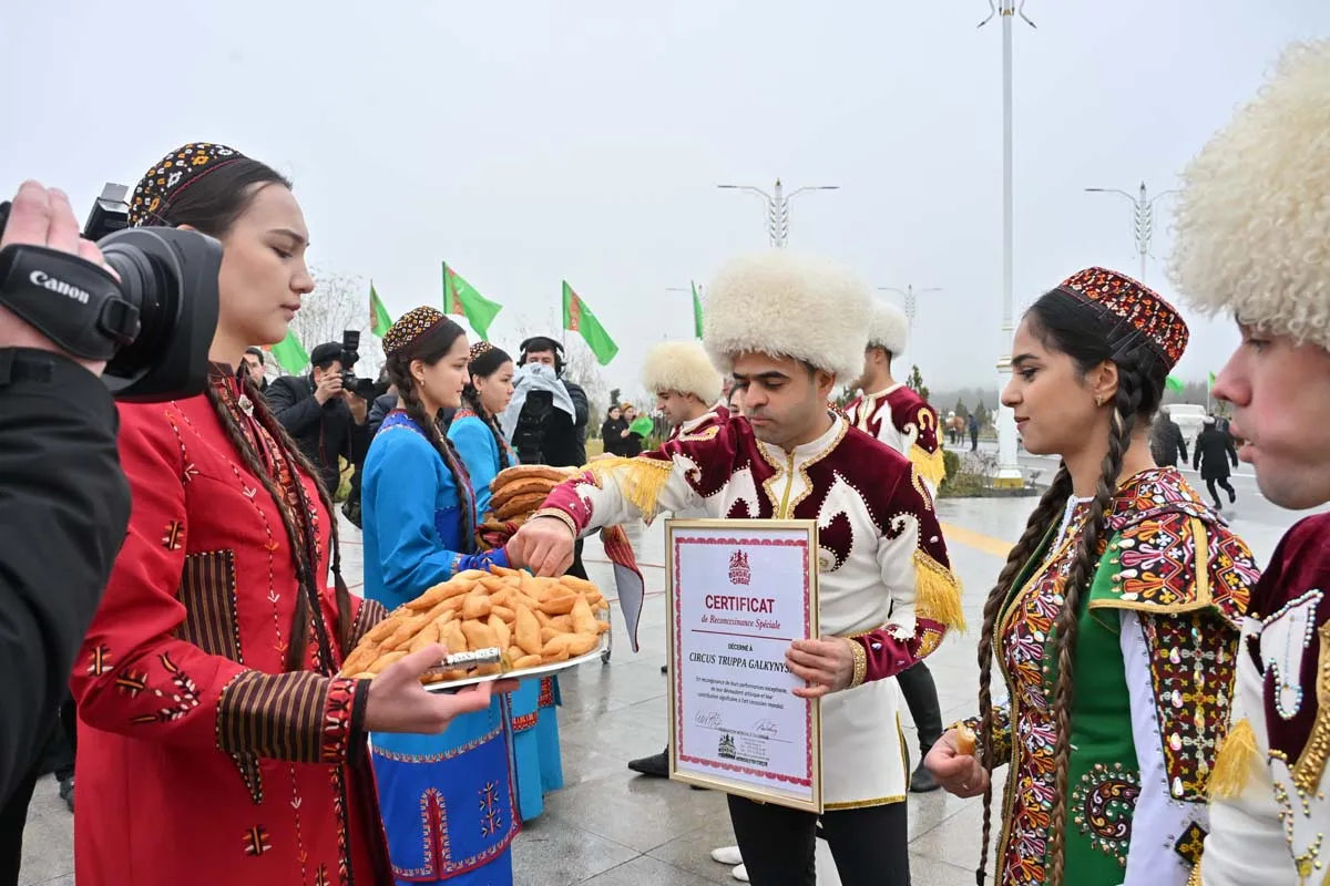 В Туркменистане, в городе Аркадаг состоялось торжественное мероприятие по случаю награждения Группы национальных конных игр «Галкыныш» («Galkynyş») международными сертификатами Всемирной федерации цирка и Европейской цирковой ассоциацииза большой вклад в цирковое искусство. Об этом сообщает ТДХ.