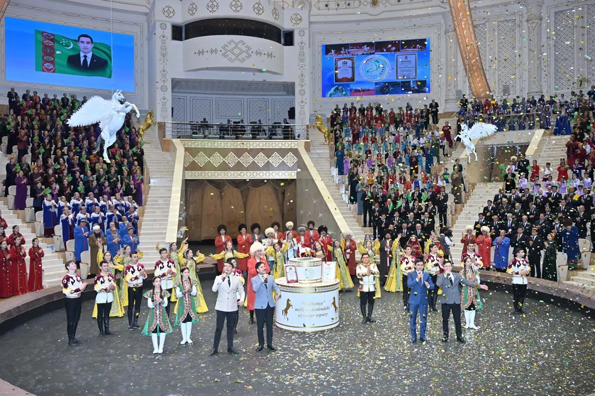 Торжество продолжилось выступлениями мастеров искусства. Затем на арене цирка состоялось выступление Группы национальных конных игр «Galkynyş». Воодушевляющим финальным аккордом торжества стало исполнение песни «Sagbol Gahryman Arkadagymyz, Arkadagly Gahryman Serdarymyz!».