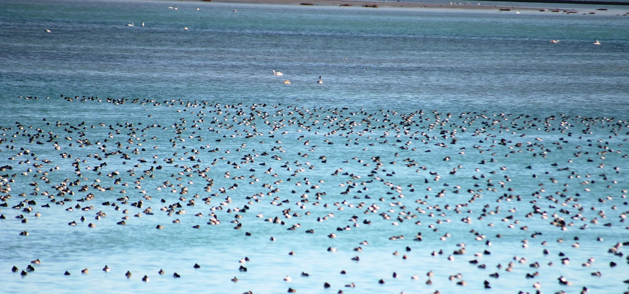 По итогам учёта было определено 43 вида и 4 – точно не установленной видовой принадлежности. Всего были учтены 405 595 птиц. «Убегающее» море в некоторых местах не дает приблизиться к берегу и рассмотреть птиц, как и сфотографировать.