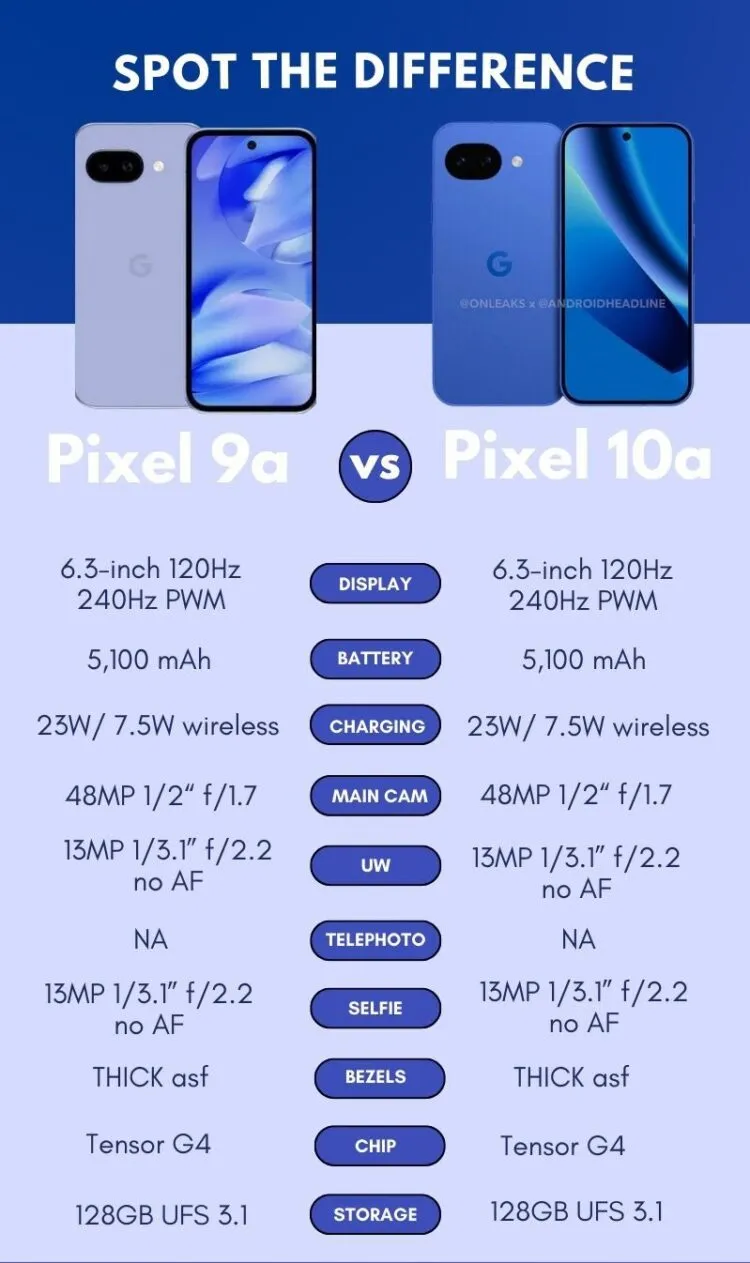 В тизере аппарат продемонстрирован в сине-фиолетовом цвете, напоминающем актуальный Iris, однако фон с ягодными оттенками указывает на расширенную палитру. Согласно утечкам, в техническом плане Pixel 10a практически идентичен прошлогоднему Pixel 9a — компания не стала обновлять процессор, камеры и батарею.