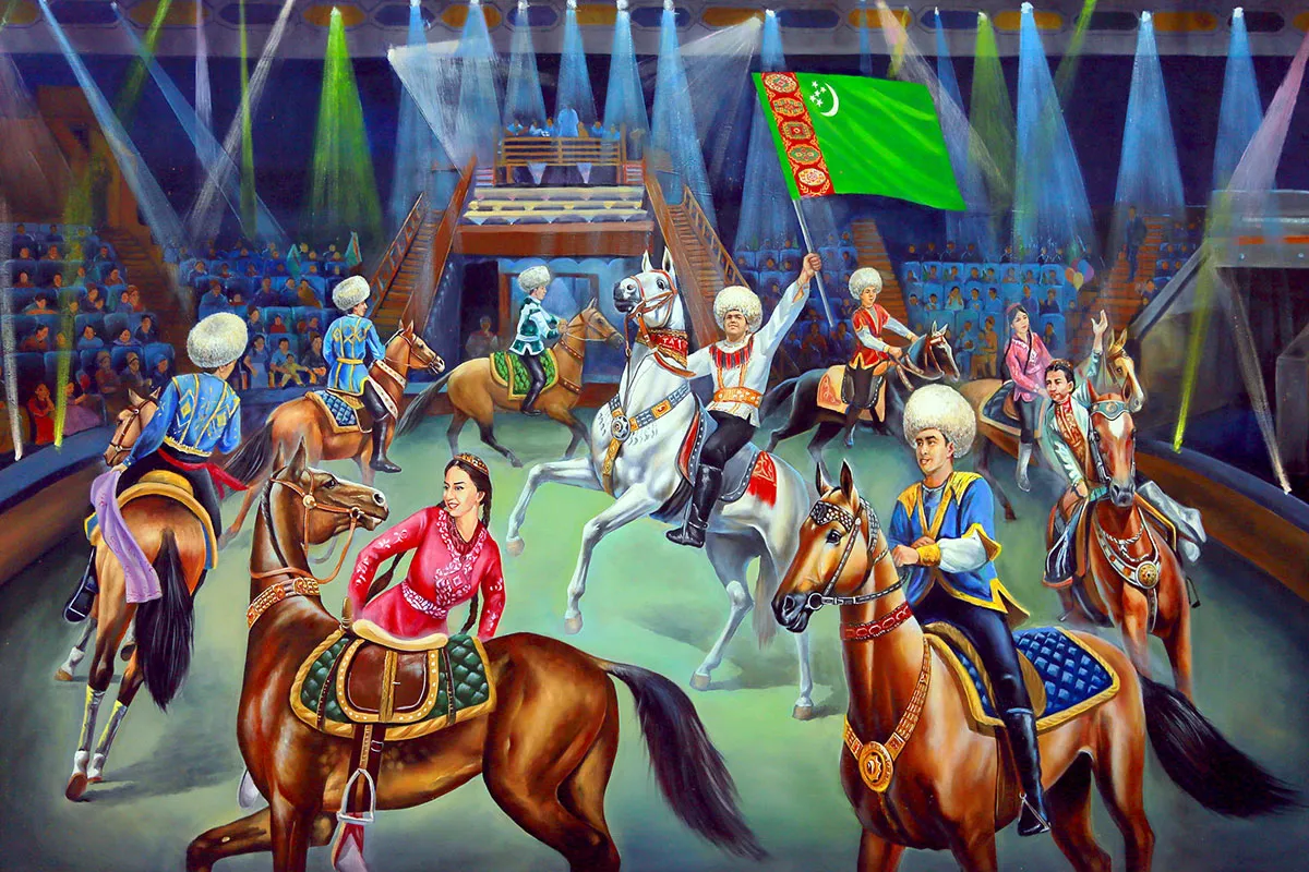 Такая тема созвучна девизу «Независимый нейтральный Туркменистан – родина целеустремленных крылатых скакунов», а также мировым успехам джигитов конно-спортивной группы «Галкыныш».