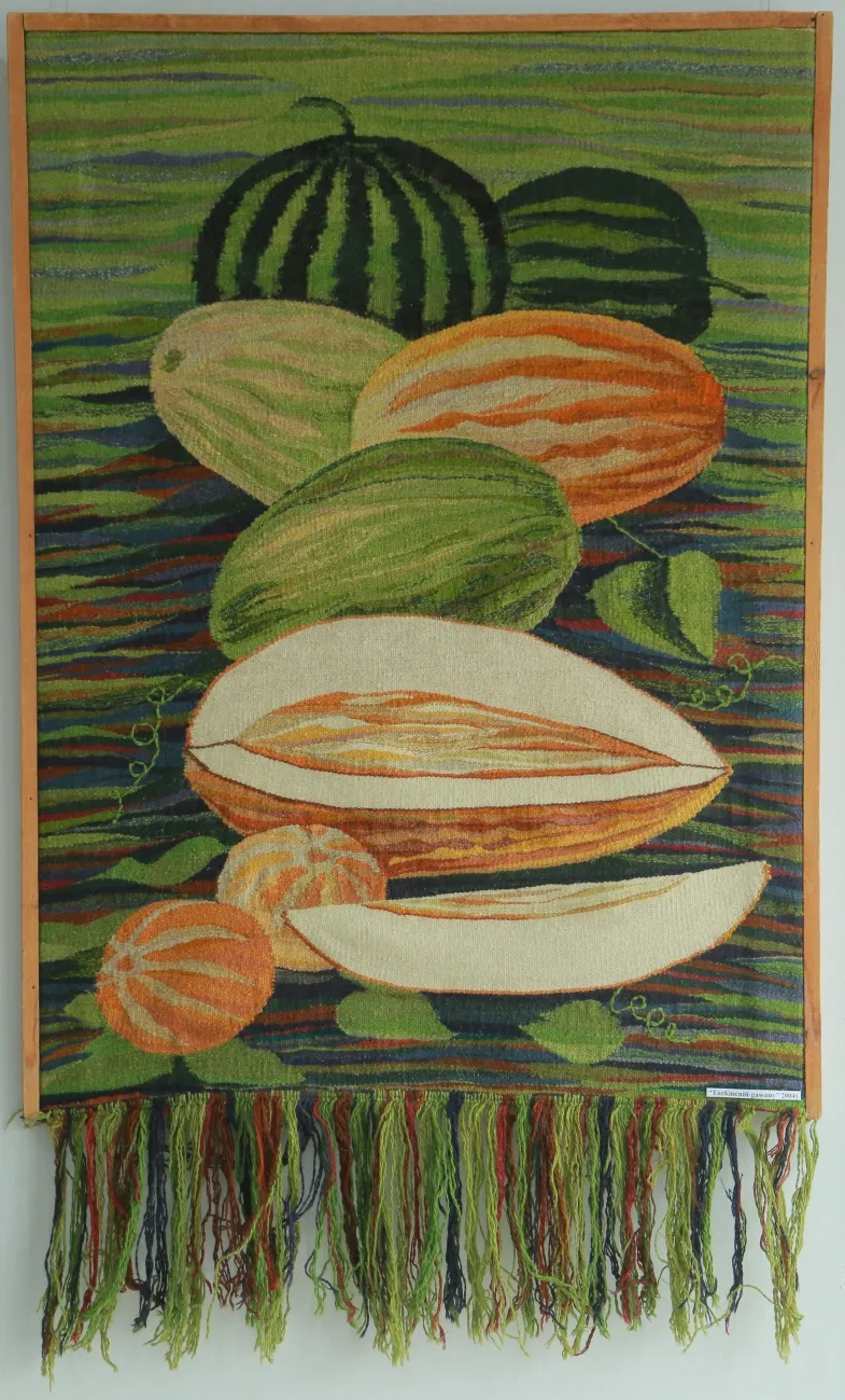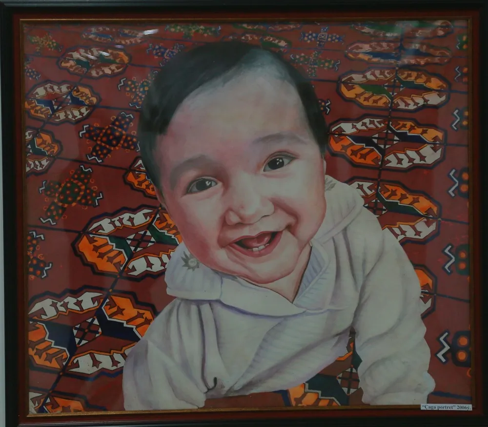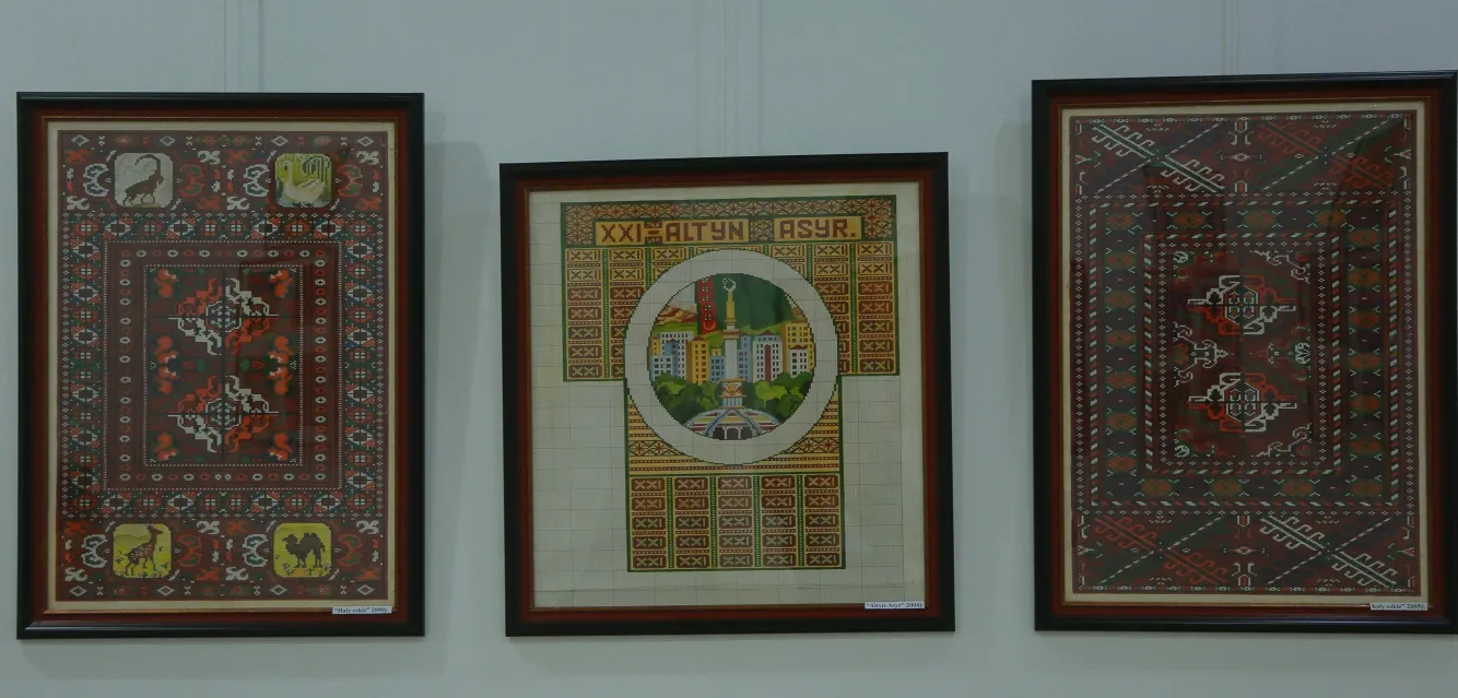 Центральное место выставки занимает гобелен, посвященный Огузхану - дипломная работа Шекер Худайбереновой в Государственной академии художеств Туркменистана. Эта работа попала в Золотой фонд академии.