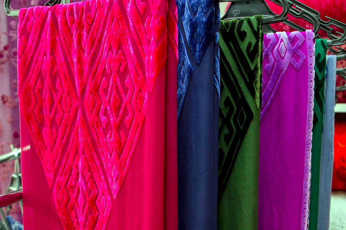 Высококачественное полотно производится на базе Ашхабадской панбархатной фабрики, ведущей свою историю с 2008 года. Предприятие выпускает широкое разнообразие видов ткани и готовых изделий – изящные накидки, шали и шарфы.