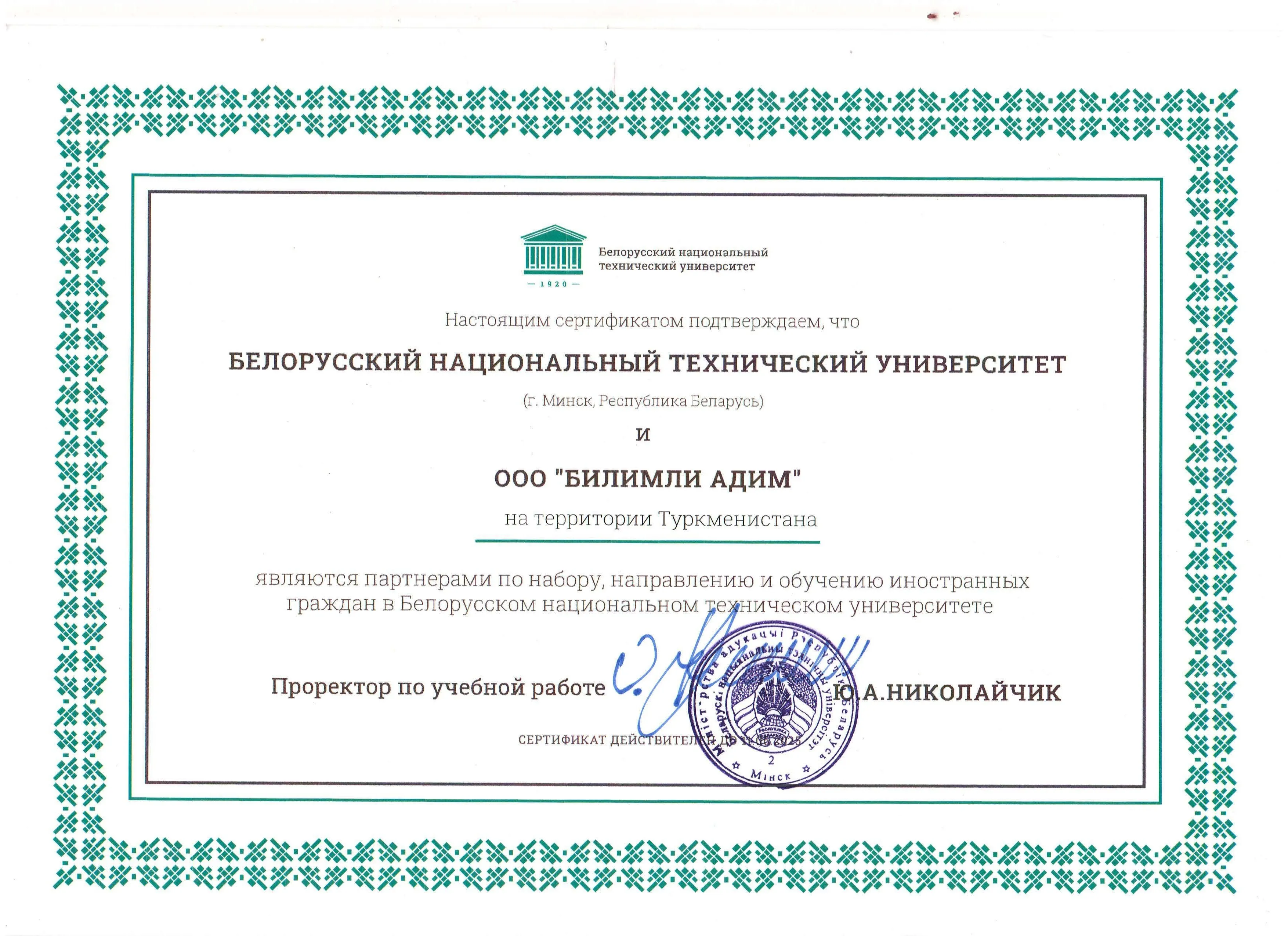 Хозяйственное общество «Bilimli ädim» заключила двусторонние соглашения и меморандумы с семью белорусскими университетами, одобренные Министерством образования Туркменистана. По условиям договорённостей компания получила право на льготное зачисление граждан Туркменистана в партнёрские учебные заведения Республики Беларусь.