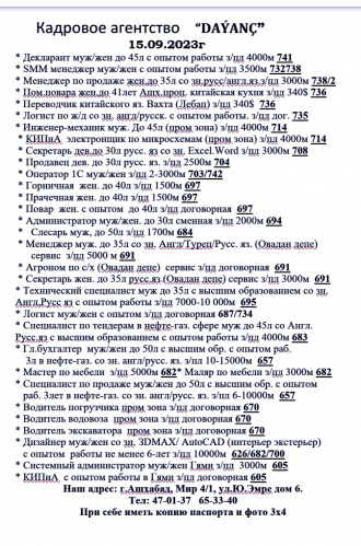 Salgysy:ул. Огузхана 207 (быв. Айтакова), дом быта «Owadan», 3 этаж; 346 каб.