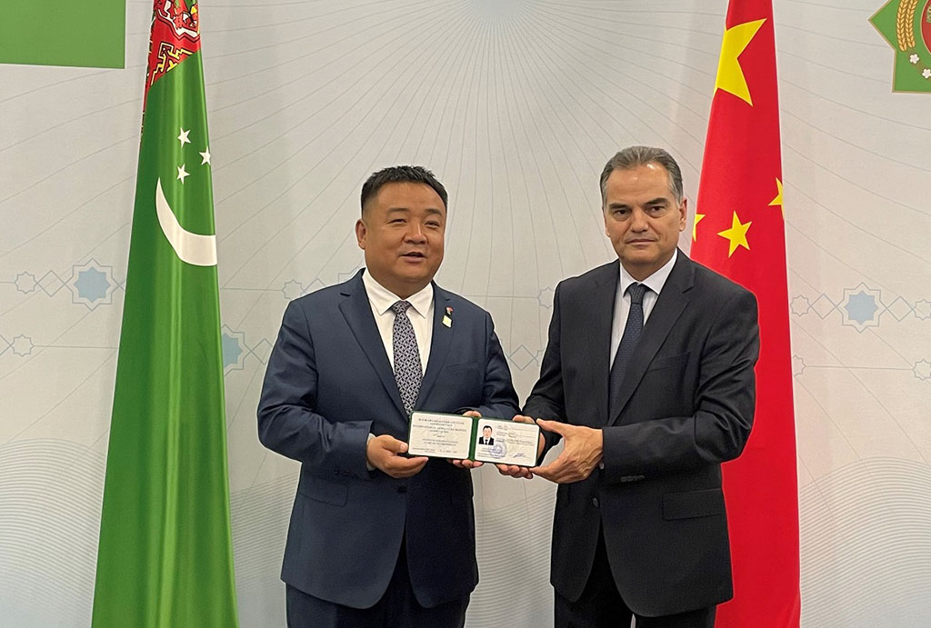 Türkmenistanyň Hytaý Halk Respublikasyndaky Adatdan daşary we Doly ygtyýarly ilçisi Parahat Durdyýew atşynas Lýu Şuçinýunyň Halkara ahalteke atçylyk assosiasiýasyna kabul edilendigi baradaky şahadatnamasyny gowşurdy.