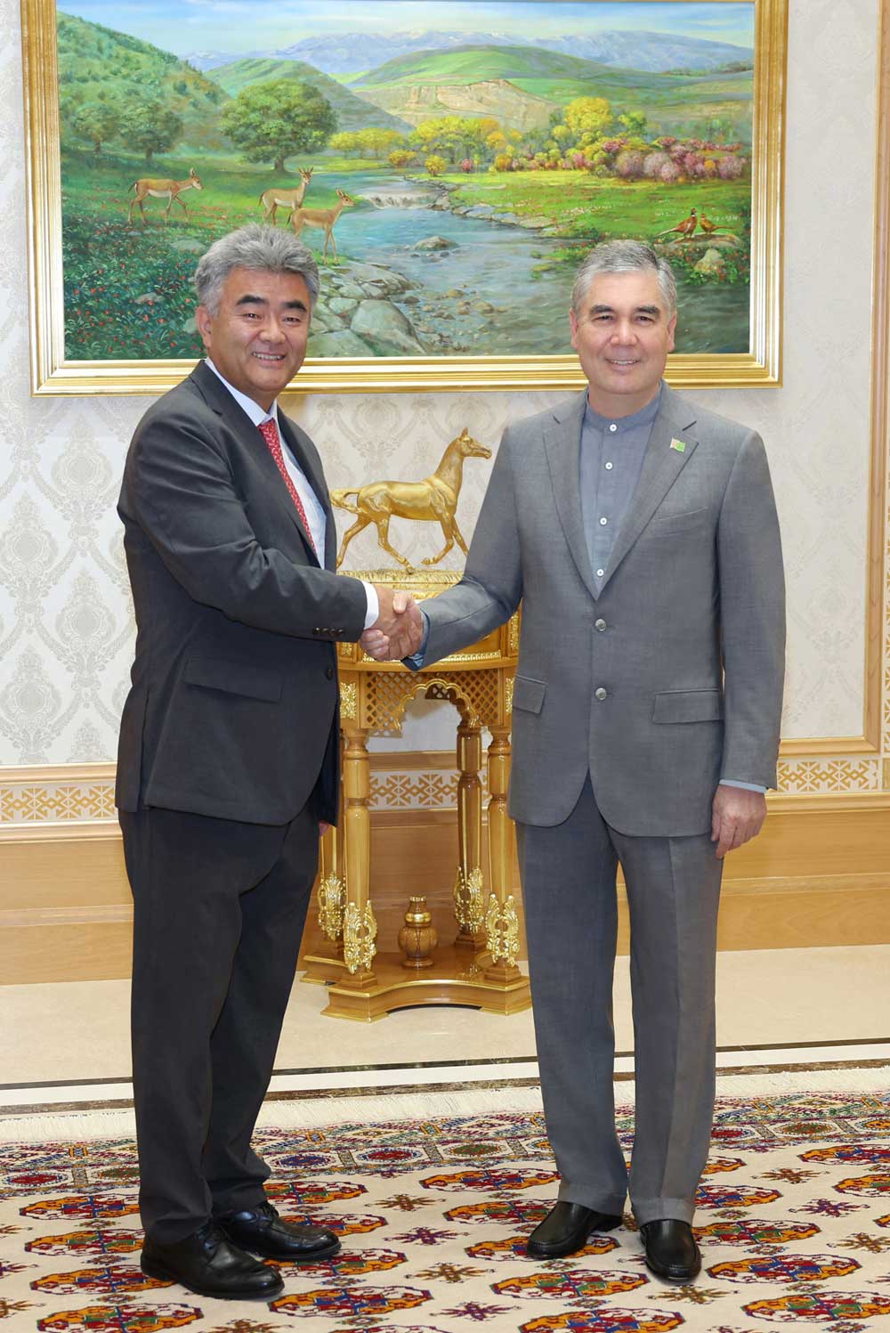 Bellenilişi ýaly, iri koreý kompaniýasynyň ýolbaşçysy duşuşmaga döredilen mümkinçilik üçin hoşallyk bildirip, Türkmenistanda bolýandygyna we ýurduň soňky ýyllarda ýeten derejesi bilen tanyşmaga şatdygyny nygtady. Türkmenistanyň Halk Maslahatynyň Başlygy hoşniýetli sözler üçin minnetdarlyk bildirip, ikitaraplaýyn hyzmatdaşlygy ösdürmek boýunça alyp barýan işlerinde oňa üstünlikleri arzuw etdi we bu gezekki saparyň özara gatnaşyklaryň mundan beýläk-de ösdürilmegine itergi berjekdigine ynam bildirdi.