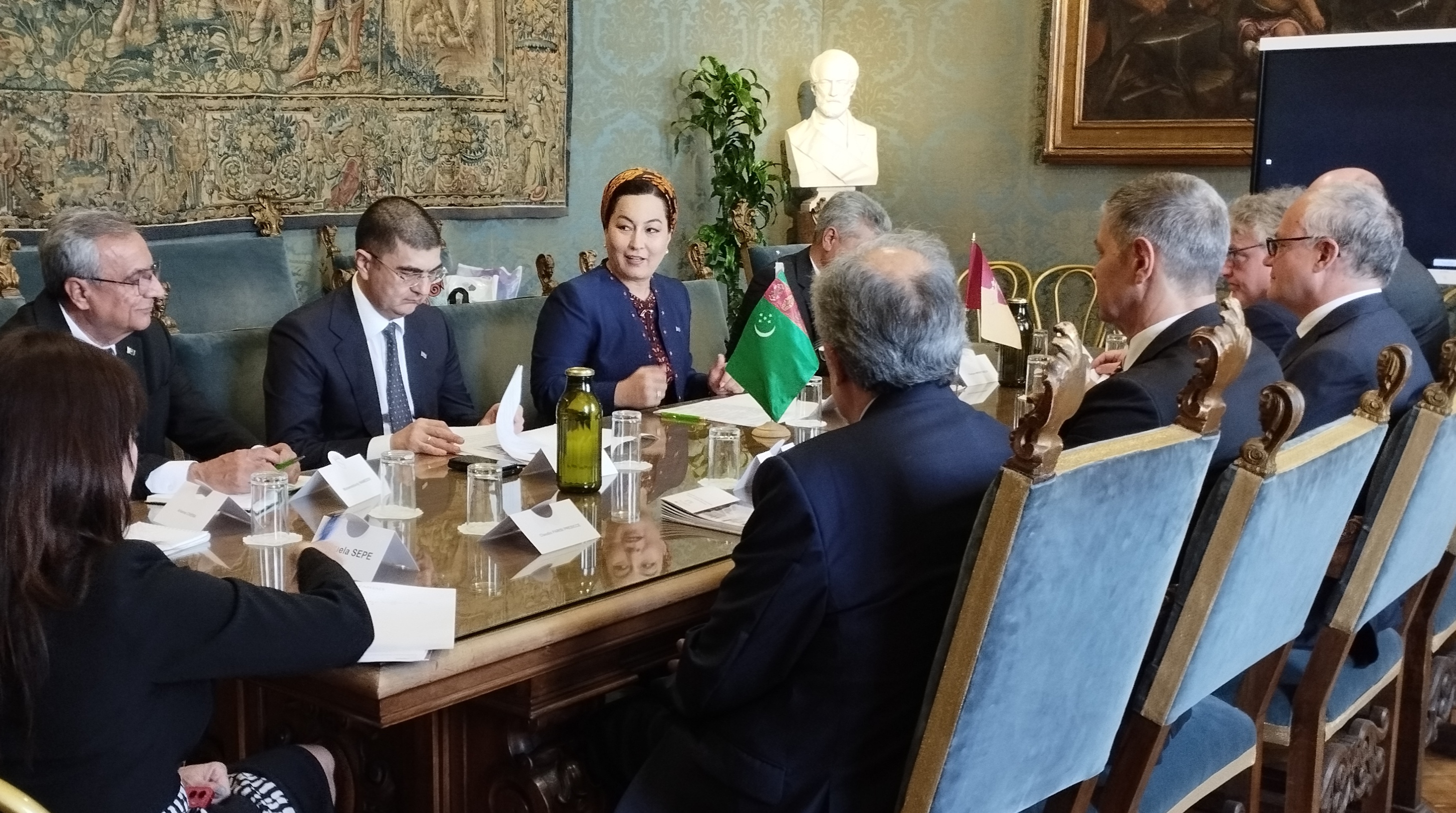 Mundan başga-da, taraplar Italiýa Respublikasynda Türkmenistanyň seýrek duş gelýän arheologik tapyndylaryň sergisini geçirmek üçin amaly ädimleri ara alyp maslahatlaşdylar.