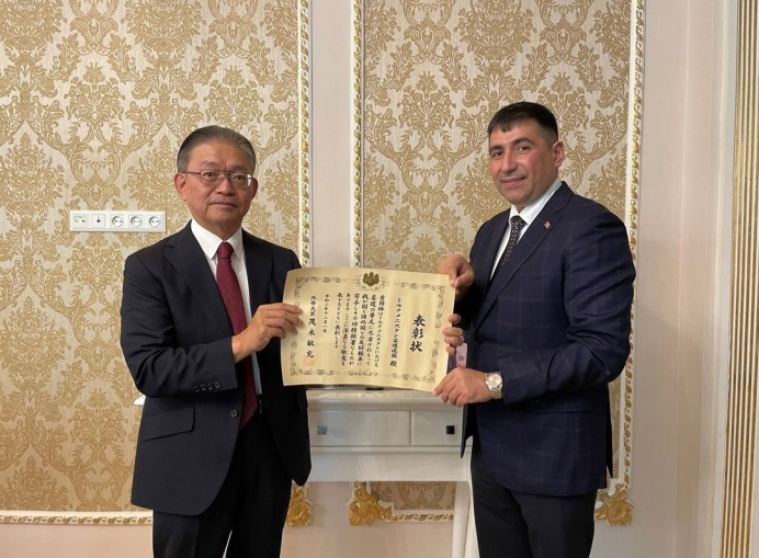 Dostlukly döwletiň ilçihanasynyň jemgyýetçilik torlaryndaky hasaby arkaly habar berşine görä, duşuşykda Türkmenistanda dzýudony ösdürmäge goşan goşandy üçin Ýaponiýanyň Daşary işler ministrligi türkmen federasiýasyny ýörite Hormat haty bilen sylaglady.