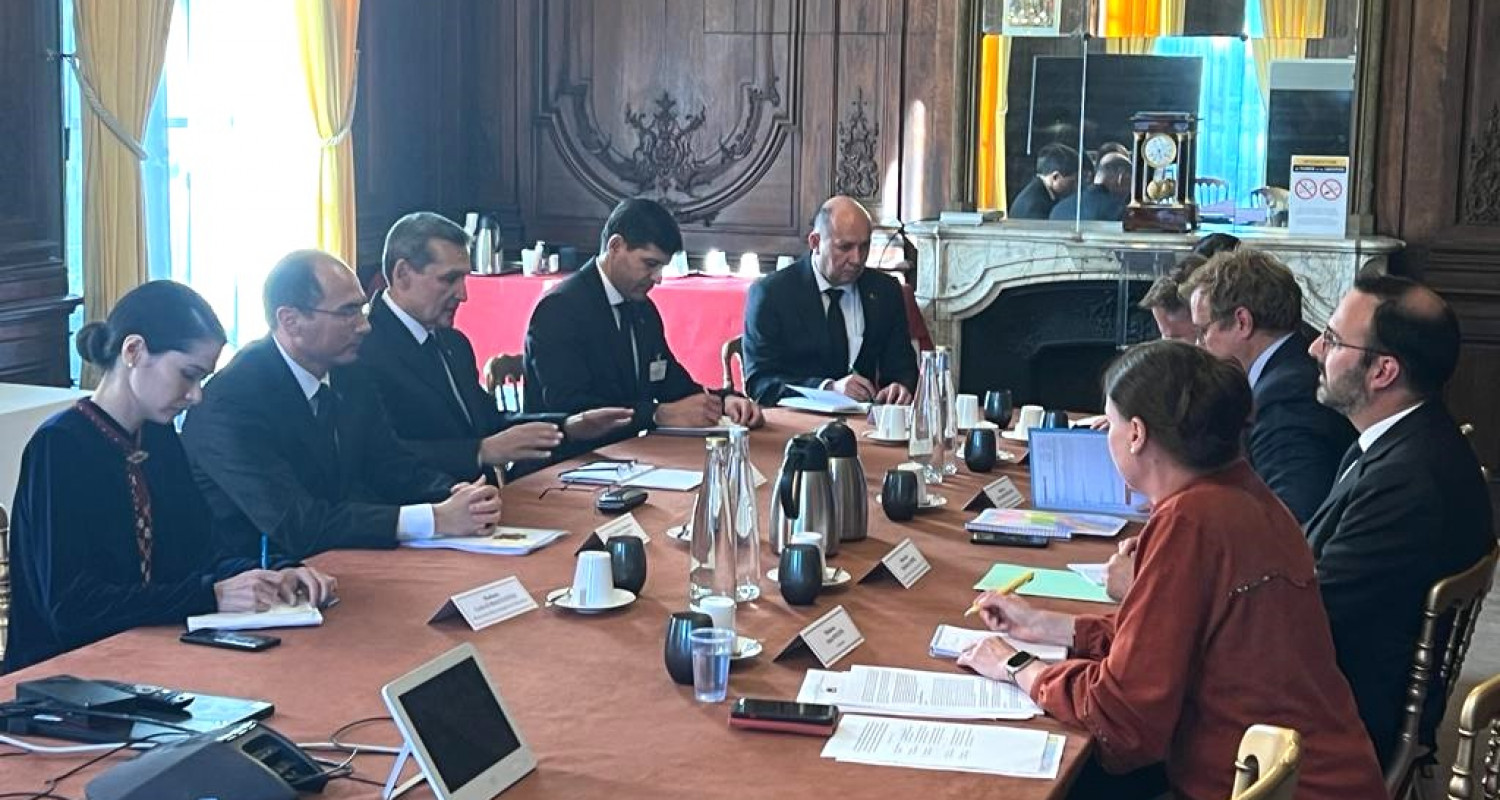 Gepleşikleriň barşynda ikitaraplaýyn gatnaşyklaryň işjeň gün tertibi we türkmen-fransuz hyzmatdaşlygyny ikitaraplaýyn görnüşde, şeýle hem halkara düzümleriň çäklerinde işjeňleşdirmek boýunça meseleleri ara alnyp maslahatlaşyldy.