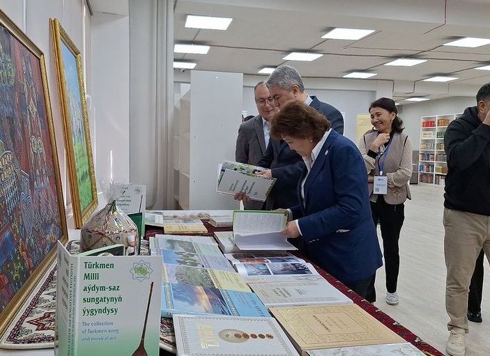 26-27-nji sentýabrda L.N.Gumilýow adyndaky Ýewraziýa milli uniwersitetiniň ylmy kitaphanasynda Türkmenistanyň Garaşsyzlygynyň 32 ýyllygyna bagyşlanyp kitaplaryňdyr bezeg we sungat eserleriniň sergisi guraldy.