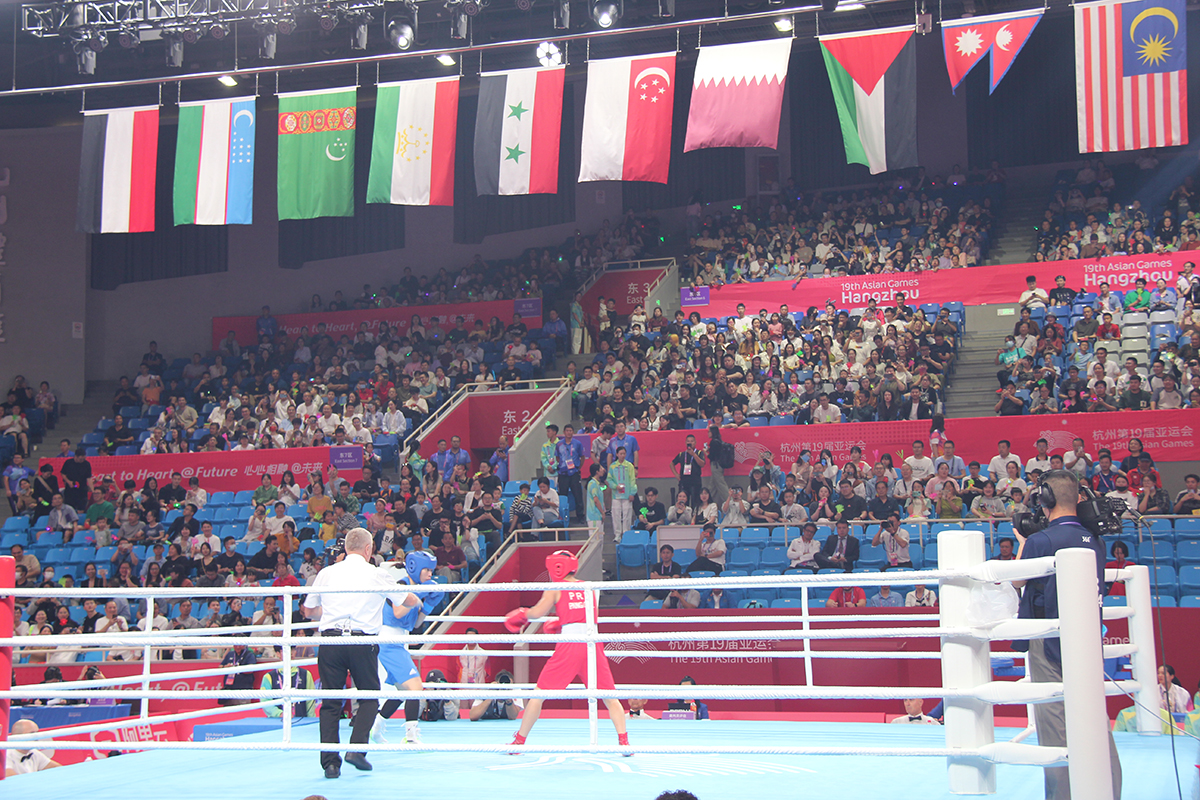 Boks sportuň bir görnüşi hökmünde 1954-nji ýylda Aziýa oýunlarynyň maksatnamasyna girizildi. Hançžouda geçirilýän Aziýa oýunlarynyň maksatnamasyndaky häzirki ýaryşda boksçular 13 baýrak ugrunda bäsleşer.