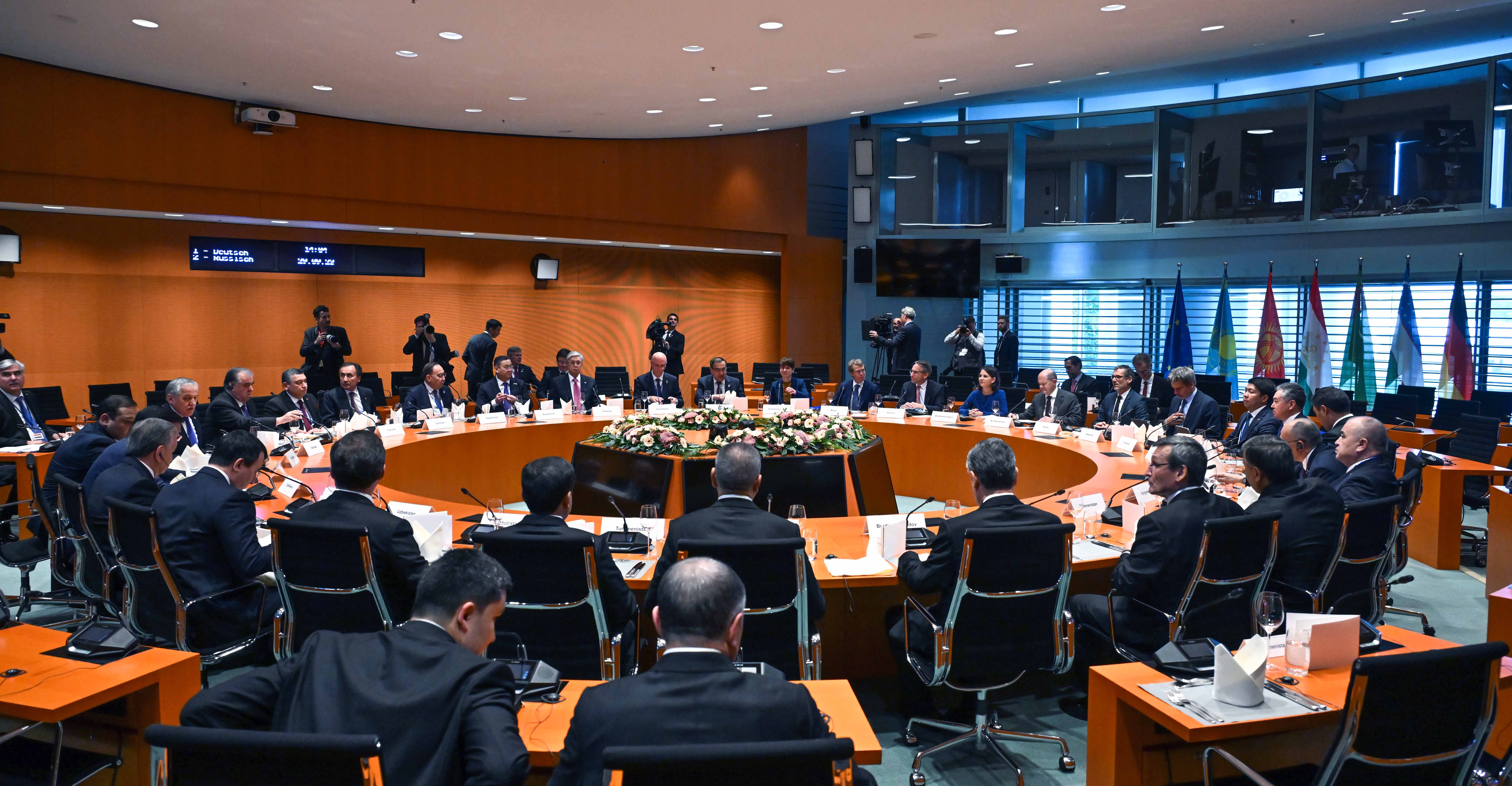 Günüň ikinji ýarymynda Berlin şäherinde iş saparyny amala aşyrýan Türkmenistanyň Halk Maslahatynyň Başlygy Gurbanguly Berdimuhamedow Merkezi Aziýa döwletleriniň wekiliýetleriniň ýolbaşçylarynyň GFR-iň Federal Kansleri Olaf Şolts bilen geçirilen duşuşygyna gatnaşdy.
