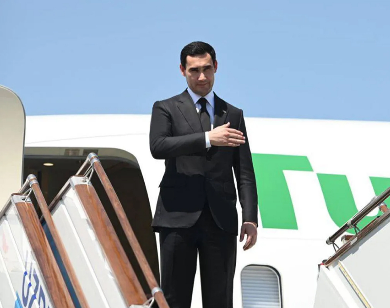 Birnäçe sagatdan soňra, Türkmenistanyň Prezidentiniň uçary Aşgabadyň Halkara howa menzilinde gondy. Bu ýerde döwlet Baştutanyny resmi adamlar garşyladylar.