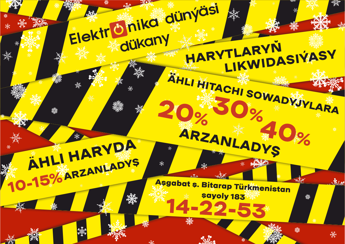 Bitarap Türkmenistan şaýolunyň ugrunda ýerleşýän «Elektronika dünýäsi» dükanynda uly arzanladyş dowam edýär.