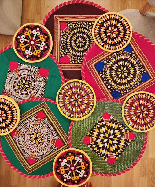 - Erikgaladan Amangül Kakabaýewanyň öýüniň özboluşly bezegli milli keşdeli dokma önümleri;