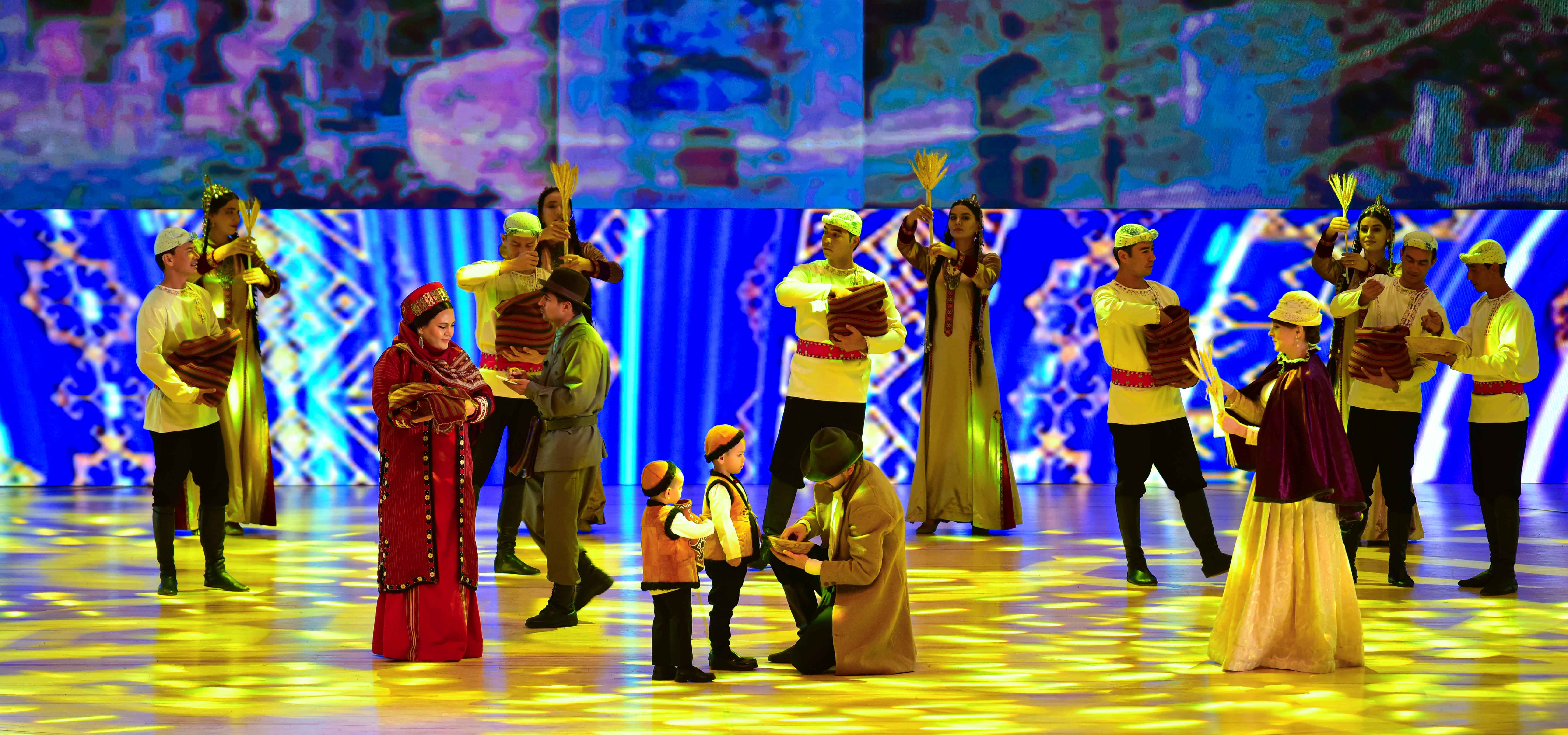 Soňra «Türkmeniň ak öýi» binasynyň sahnasynda sungat ussatlarynyň, ýaş ýerine ýetirijileriň – dürli milli döredijilik bäsleşikleriniň ýeňijileriniň we meşhur aýdym-saz toparlarynyň konserti geçirildi. Onda artistleriň çykyşlary Bitarap Türkmenistanyň häzirki döwürde gazanýan ösüşleriniň esasy tapgyrlaryny görkezýän wideoşekiller bilen utgaşdy.
